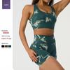 Roupa de ioga tie-dyeing para o verão de 2025, calça fitness com levantamento de quadril e pêssego, shorts justos para corrida e esportes femininos