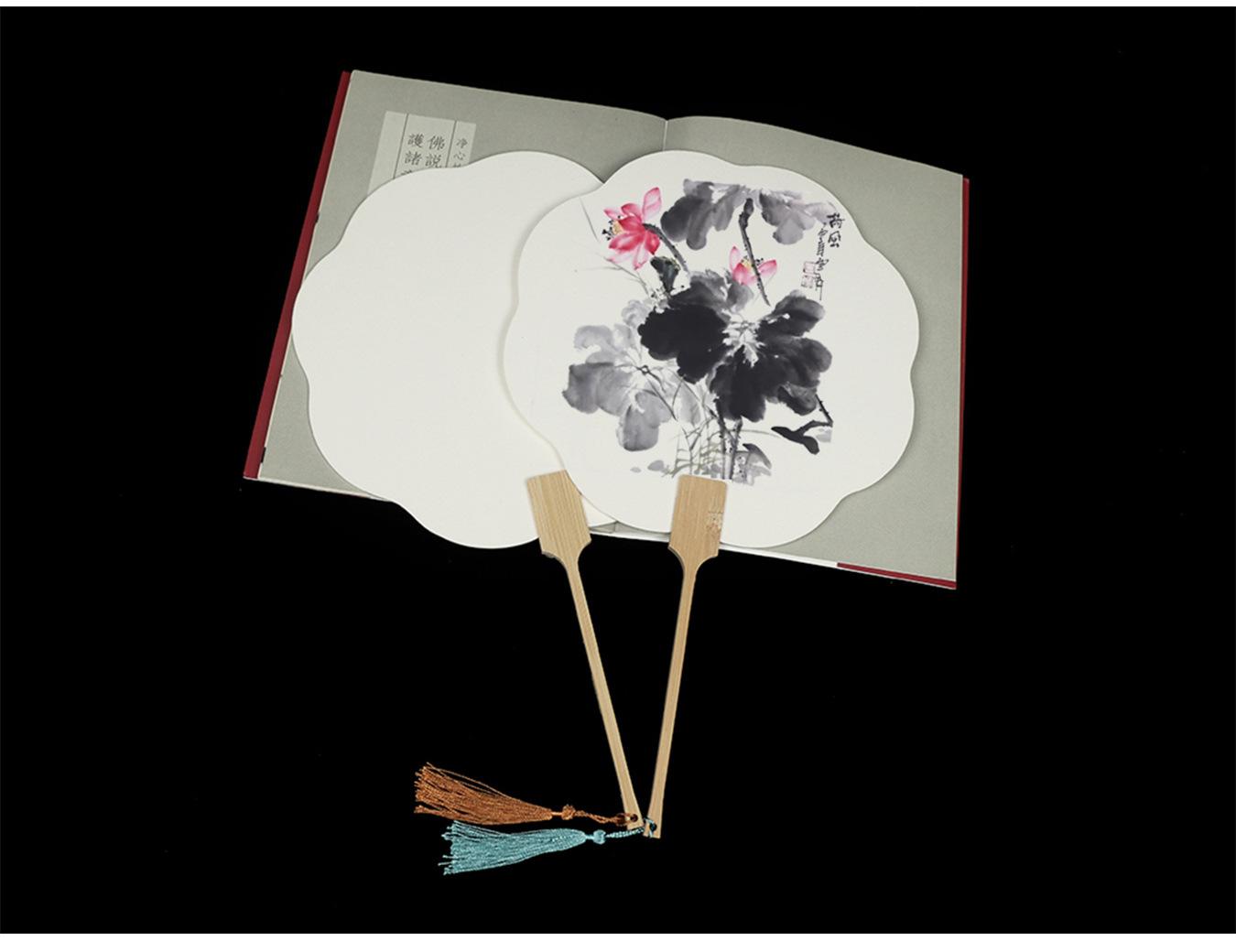 Compre Shengxuan Fan Dupla face espessa Xuan Papel Blank Card Ventilador de papel pintado à mão Pintura chinesa caligrafia diy Long Handle Fan Atacado no atacado no Joom.pro