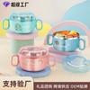 Venda por atacado 304 crianças aço inoxidável tigela de arroz dos desenhos animados resistente a gotas anti-escalda bonito bebê bebê suplemento alimentar tigela com tampa