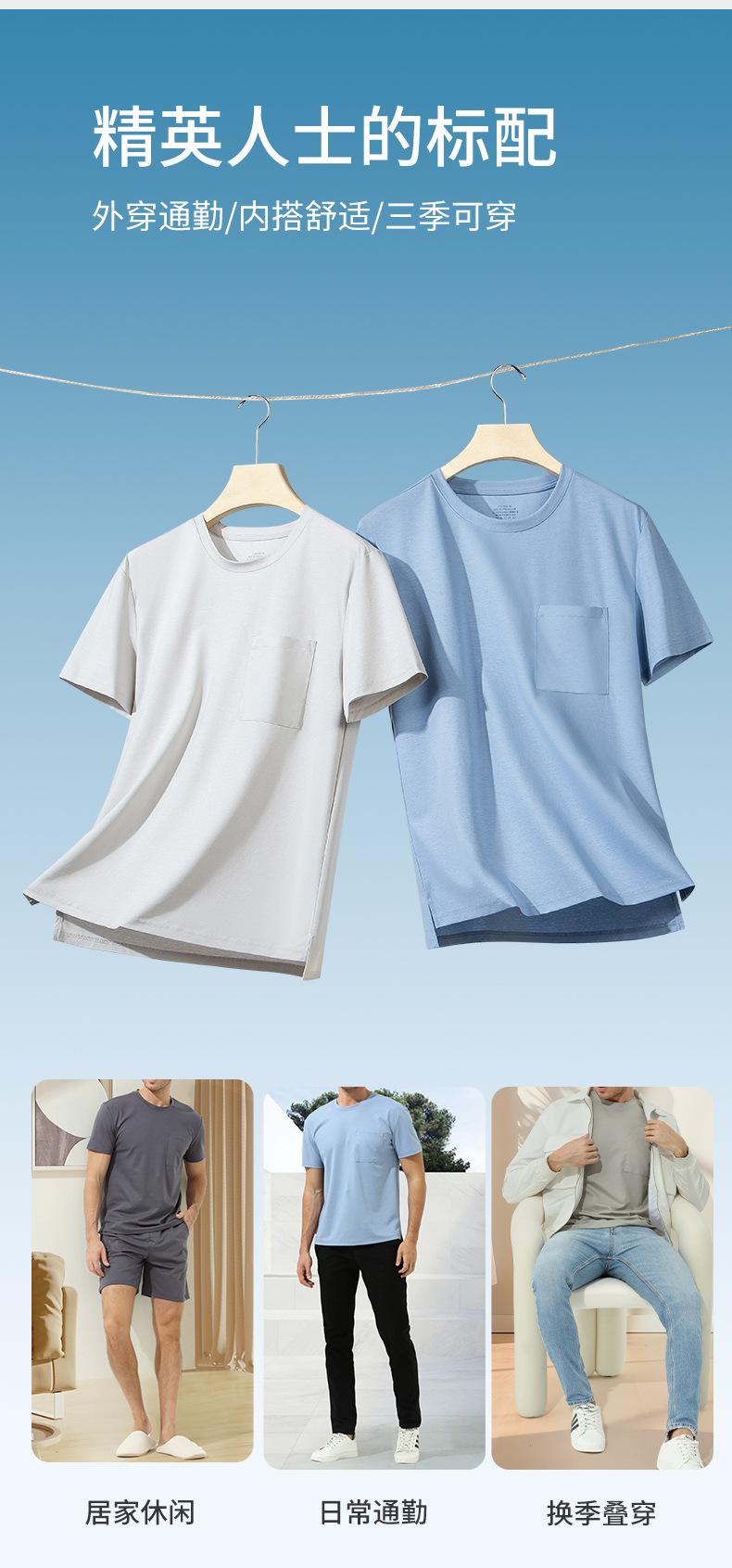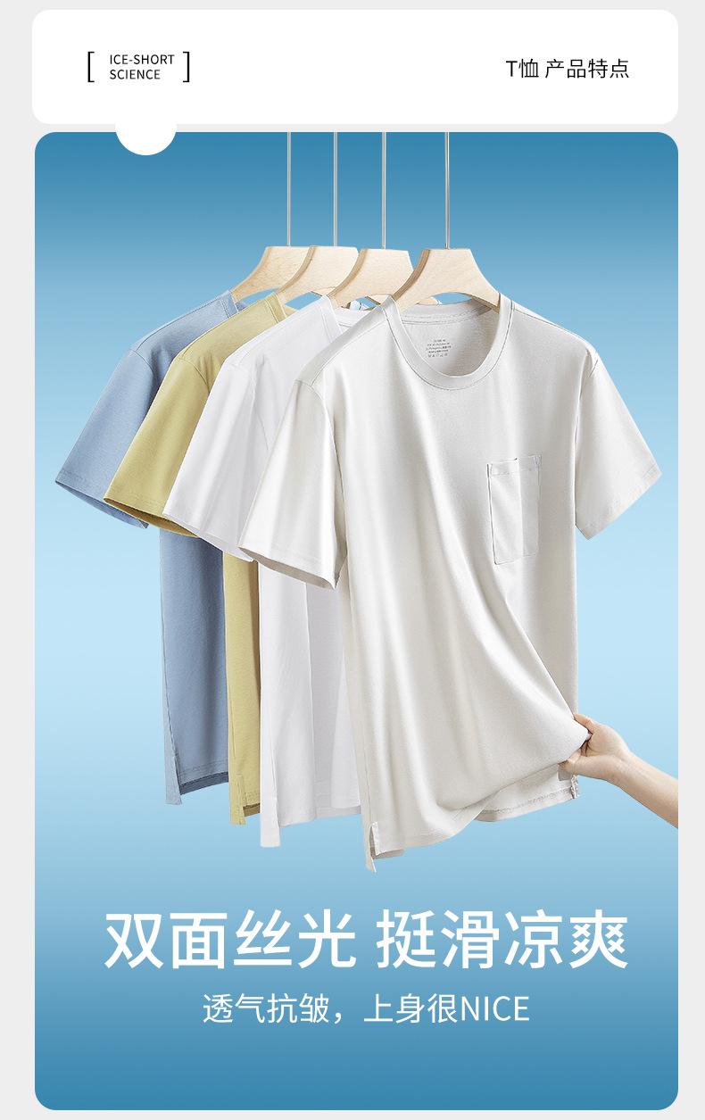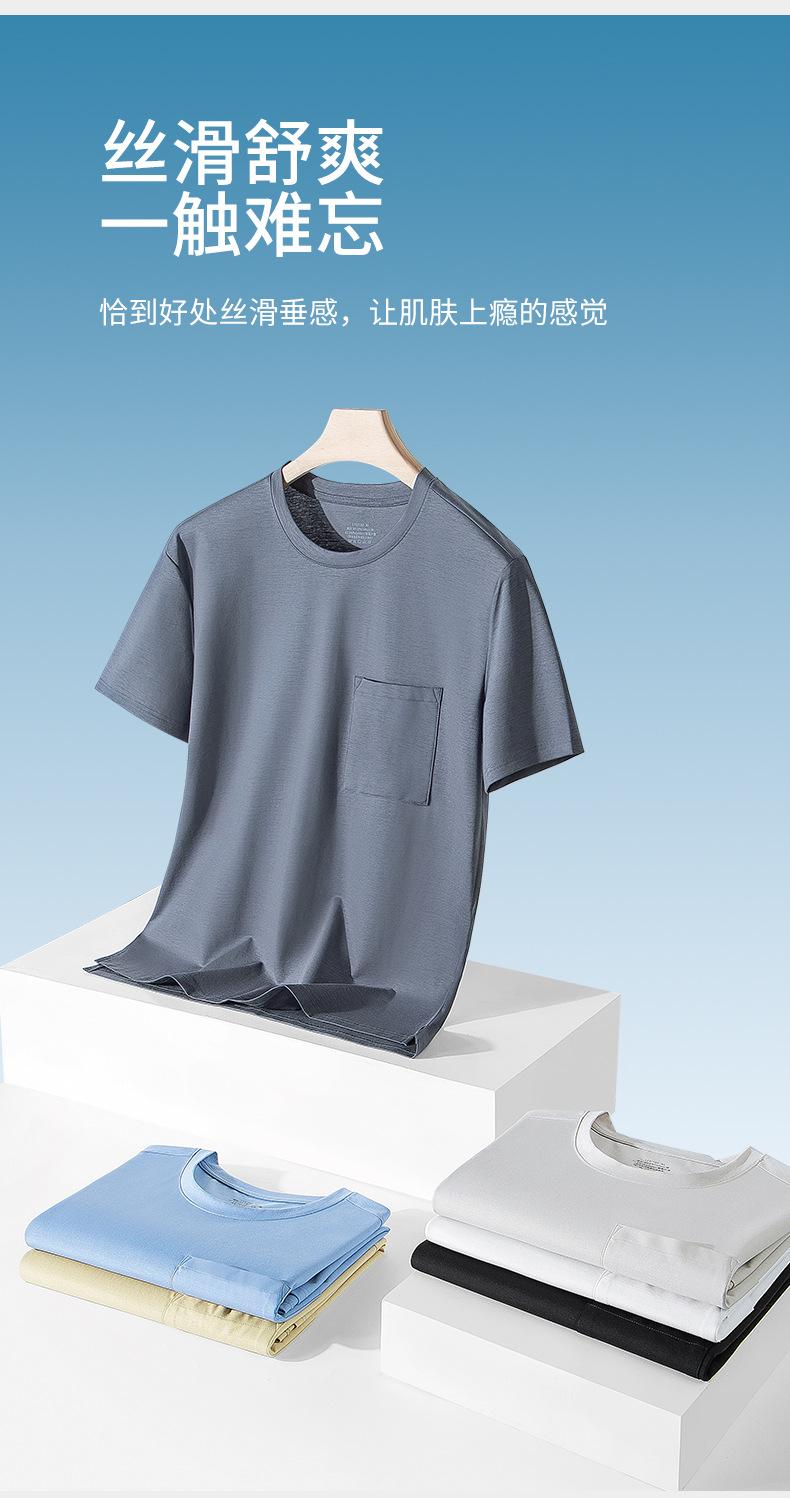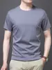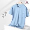 Top Masculino de Algodão Mercerizado 80S Primavera/Verão, Fresco Manga Curta Fino Base Cor Sólida Outdoor Resistente a Amassados Camiseta com Bolso