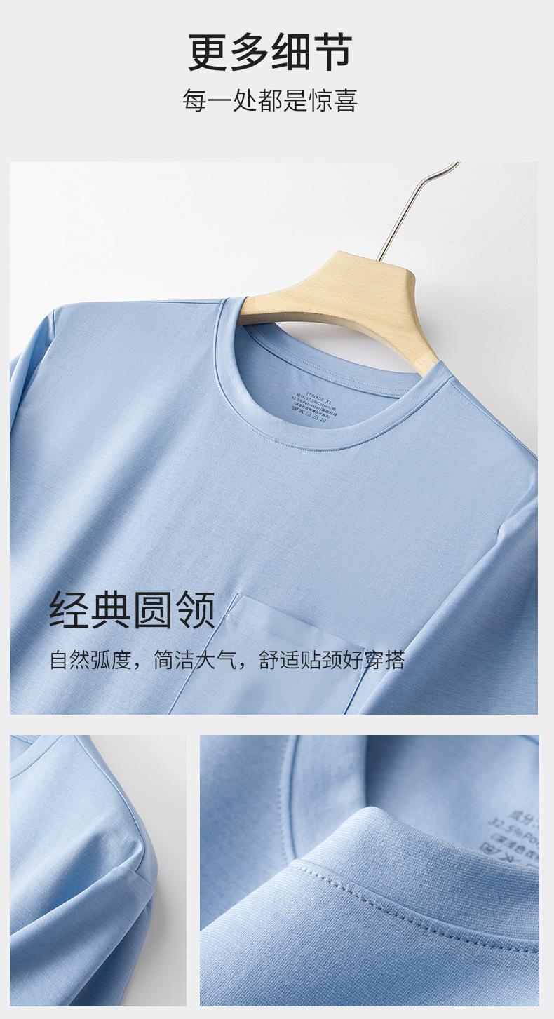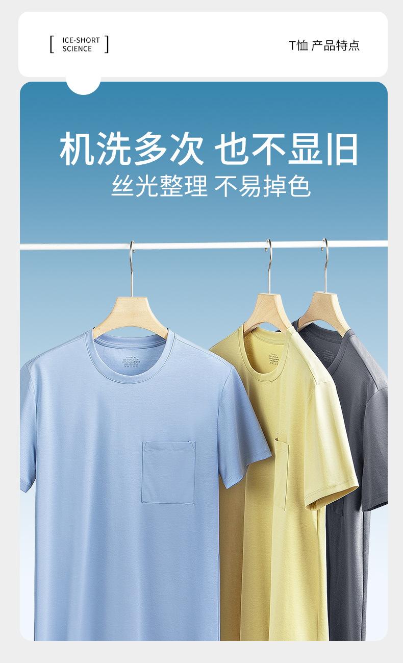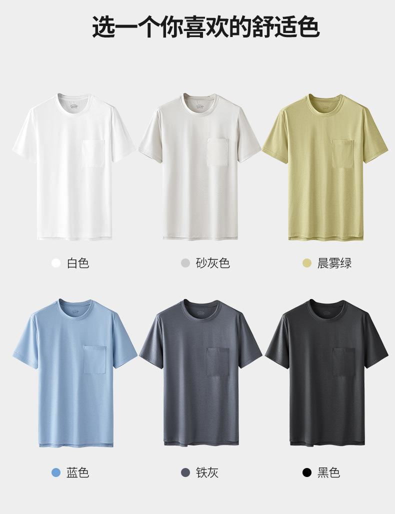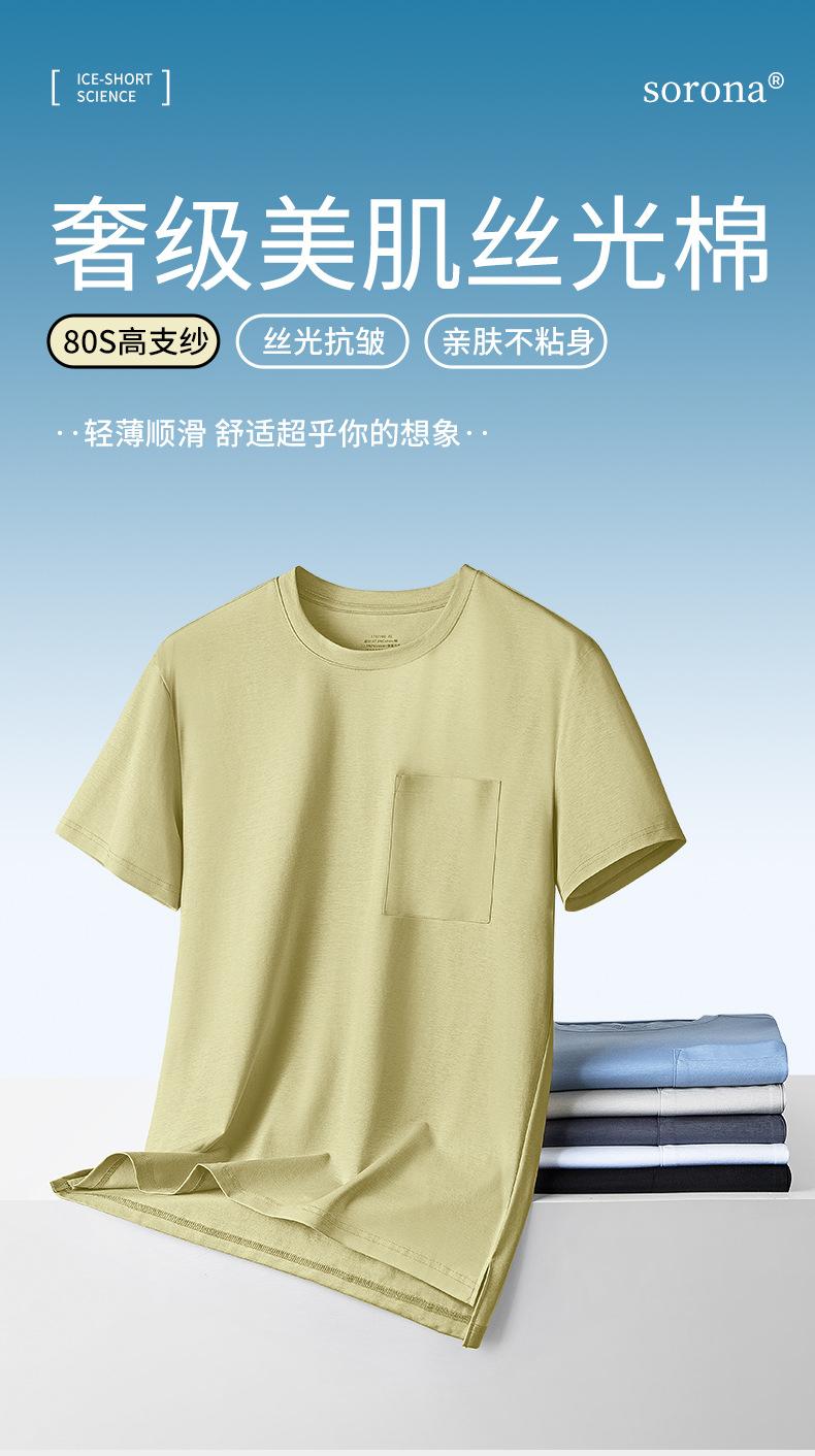 Top Masculino de Algodão Mercerizado 80S Primavera/Verão, Fresco Manga Curta Fino Base Cor Sólida Outdoor Resistente a Amassados Camiseta com Bolso