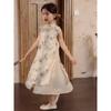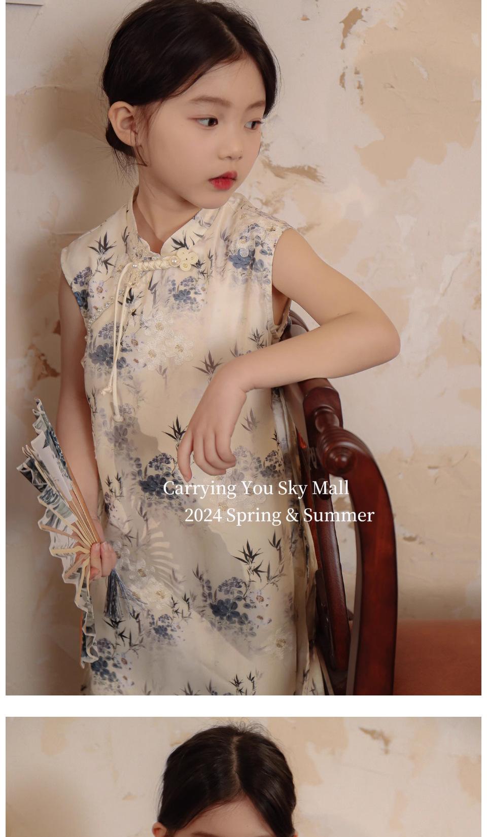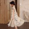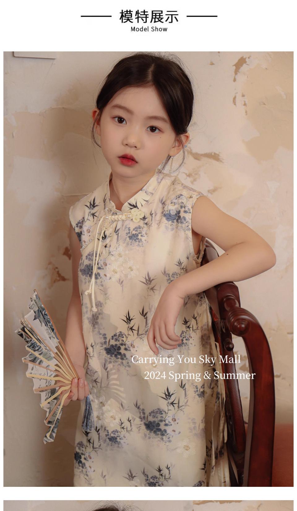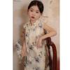 Vestido de pintura de tinta vintage das crianças Hanfu novo chinês Cheongsam vestido de pintura 2024 novo verão Chiffon vestido