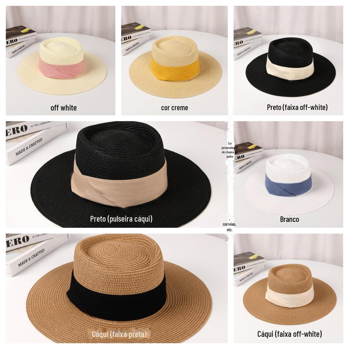 Primavera e Verão nova moda chapéu de palha ao ar livre viagem proteção solar chapéu comércio exterior simples elegante cartola moda masculina chapéu britânico