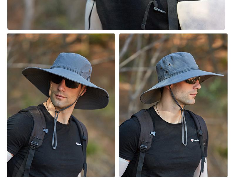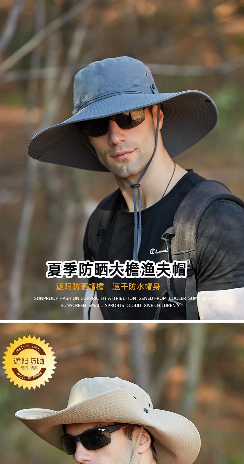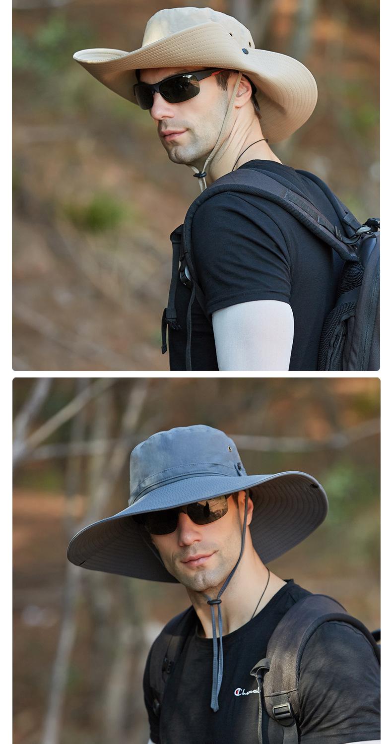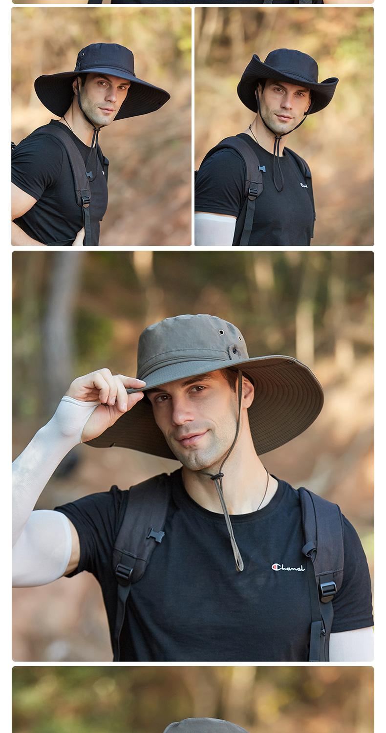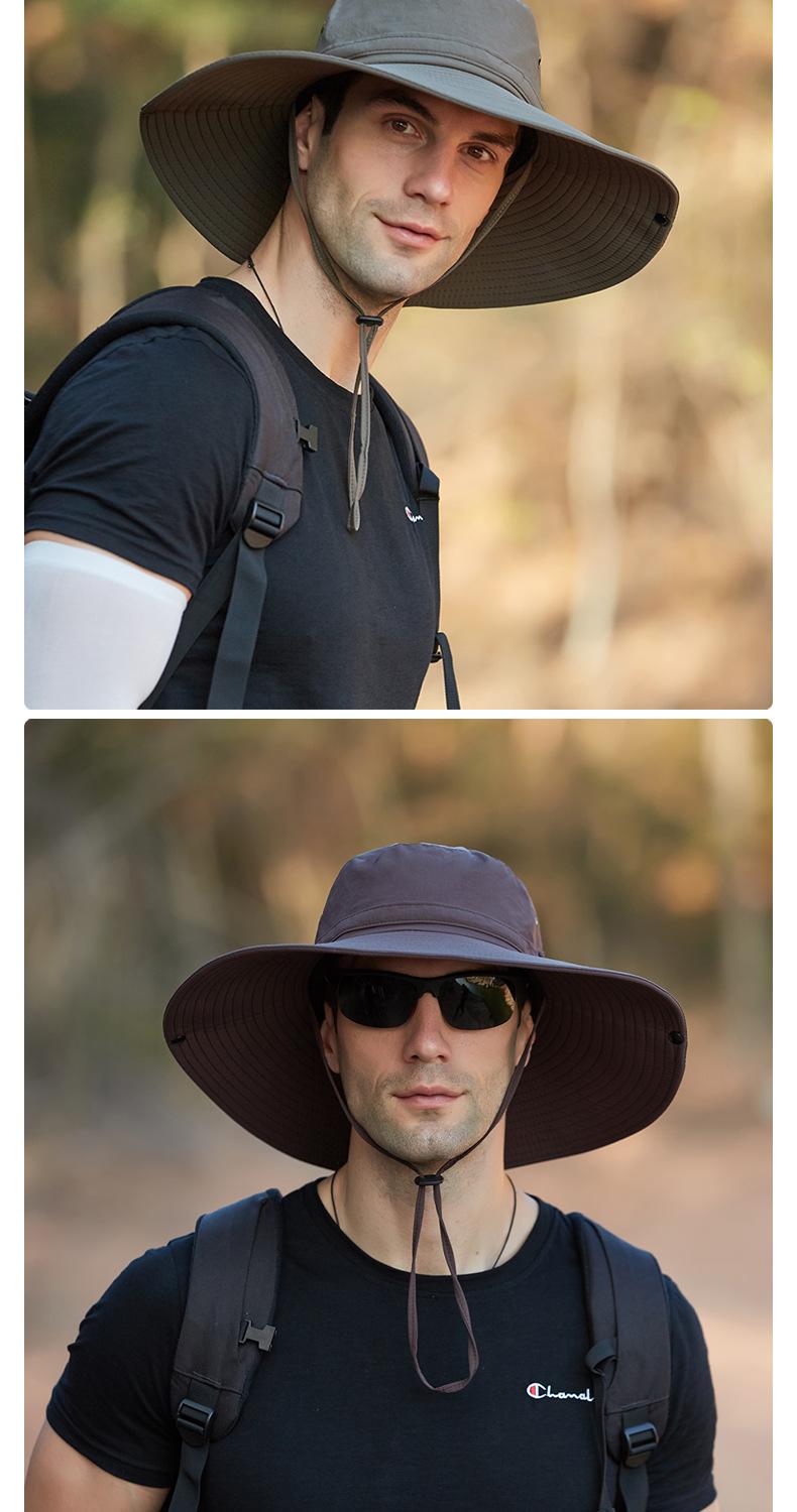 9206 Chapéu Europeu e Americano Chapéu de Sol Masculino Chapéu de Pescador de Aba Larga Extra Grande para Exterior Chapéu de Sol Masculino de Verão para Montanhismo
