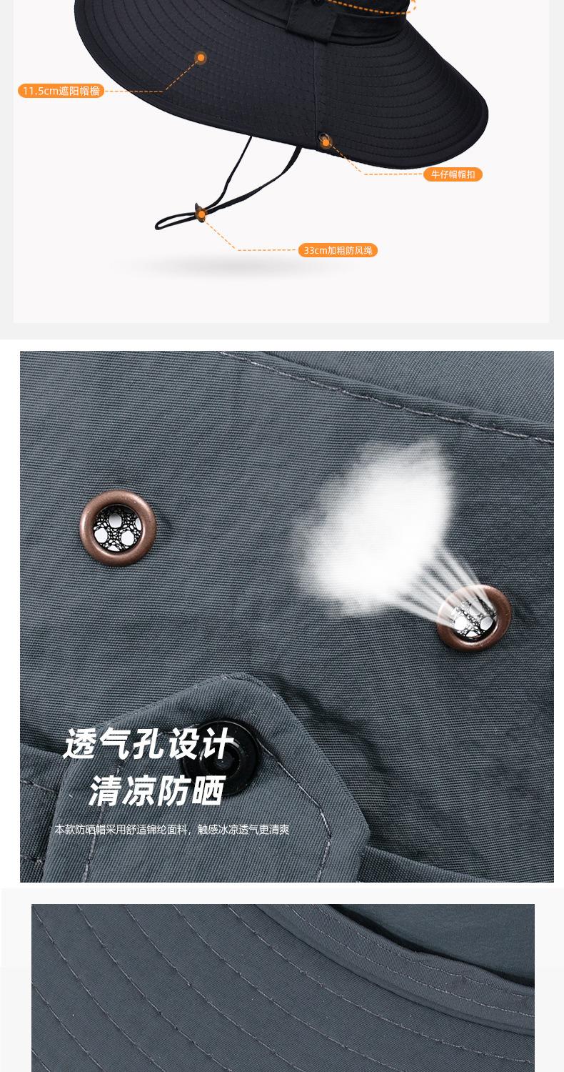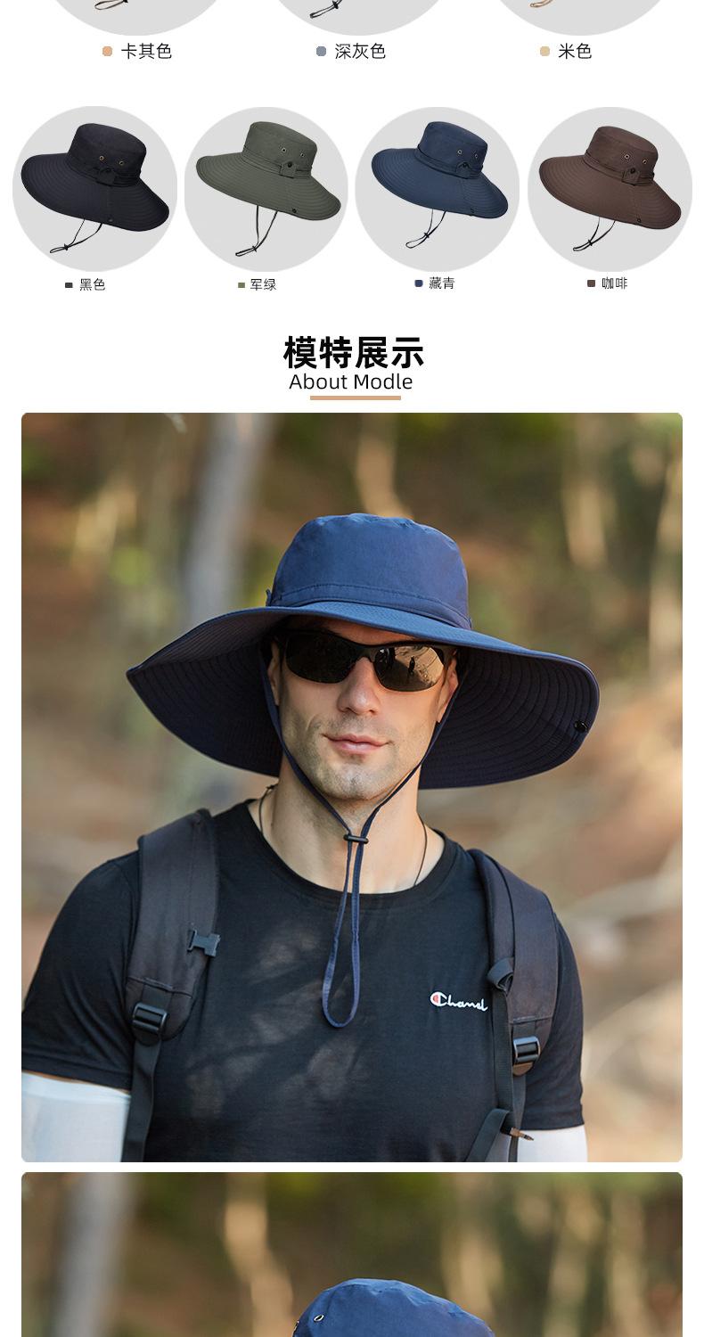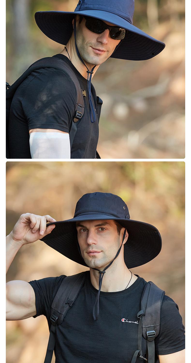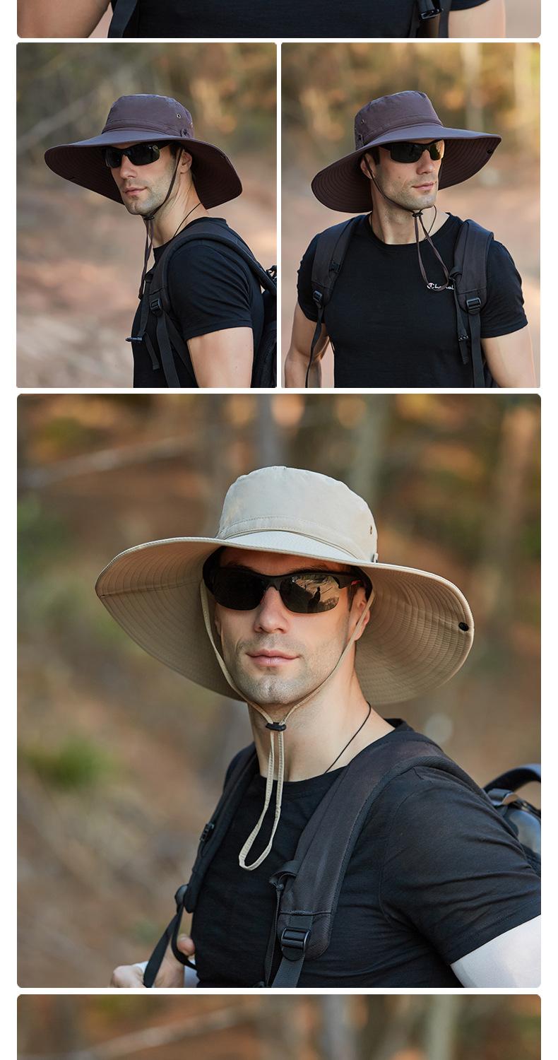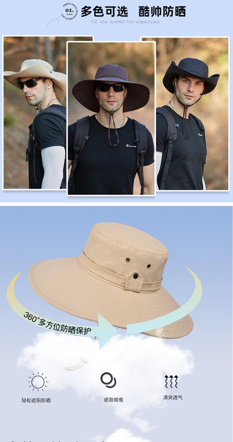 9206 Chapéu Europeu e Americano Chapéu de Sol Masculino Chapéu de Pescador de Aba Larga Extra Grande para Exterior Chapéu de Sol Masculino de Verão para Montanhismo
