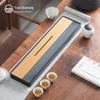 Esta é uma bandeja de chá de imitação de pedra de ouro preto, mas na verdade é uma bandeja de chá de madeira tecnológica.