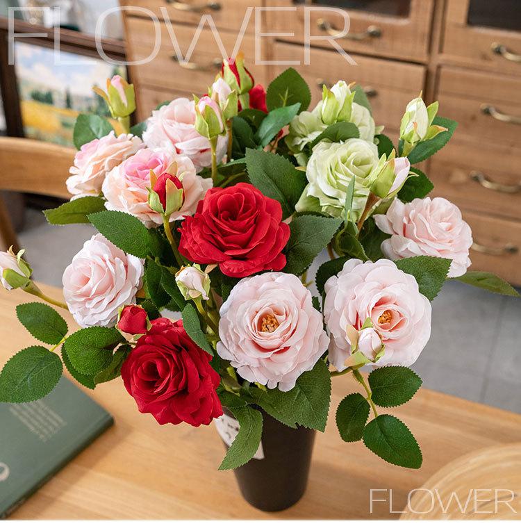 INS estilo macaron 3 cabeças Lulian fabricante de flores artificiais decoração de casa buquê de casamento flores artificiais de parede MW66776