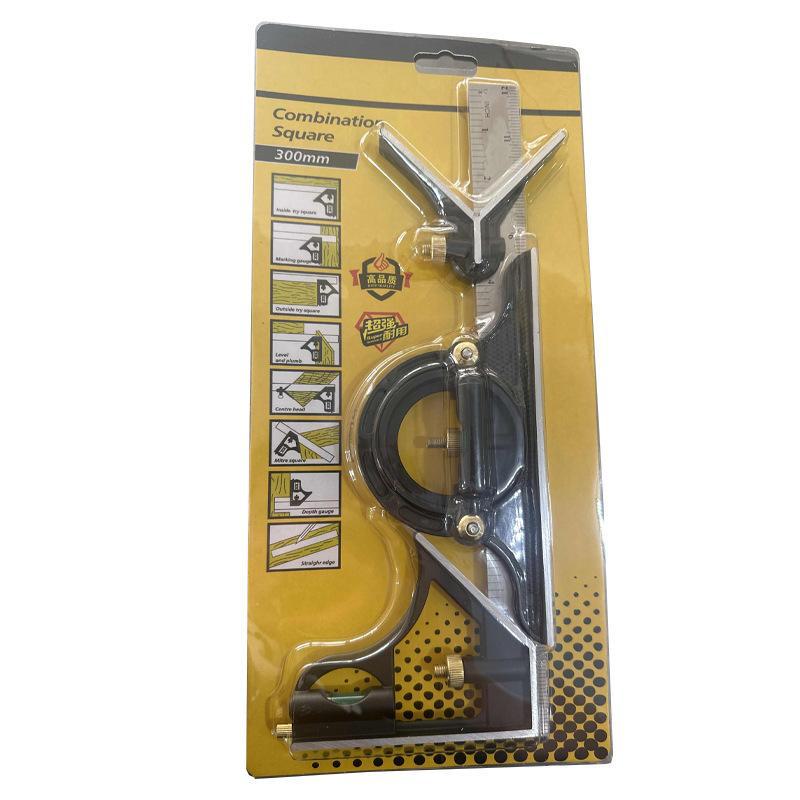 Régua de ângulo de combinação de ferramenta de medição 300MM aço inoxidável 180 graus função régua de ângulo para carpintaria com nível de carpintaria