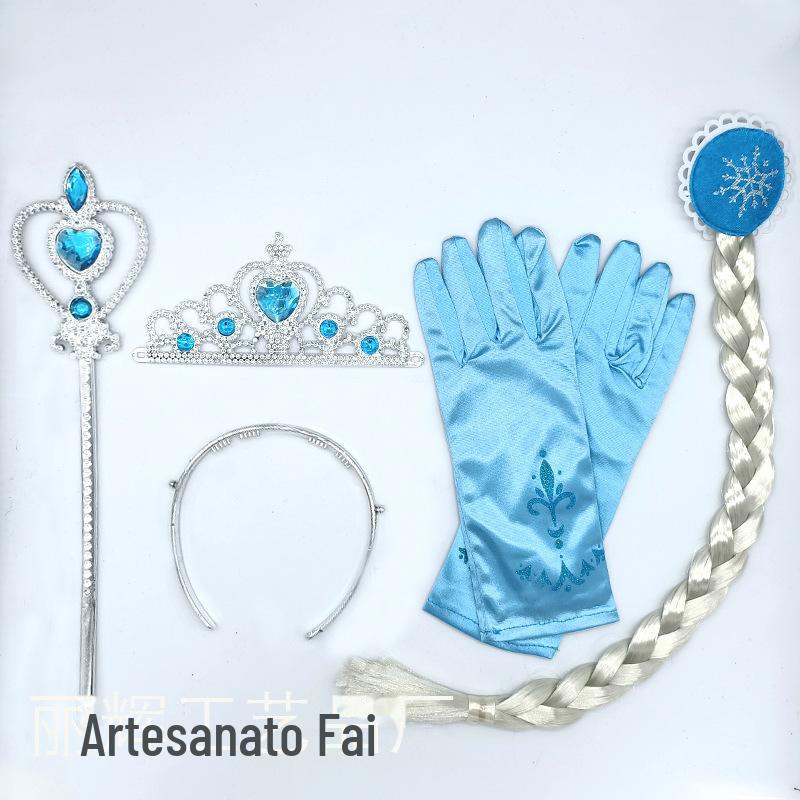 Criança Frozen Elsa mesma varinha mágica Crown Elsa peruca trança, role play conjunto de 4 peças