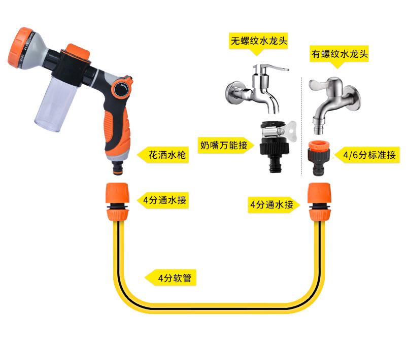Fábrica atacado jardinagem doméstica rega flores rega vegetais pistola de água banho de animais de estimação espuma lavagem de carro pistola de água chuveiro multifuncional
