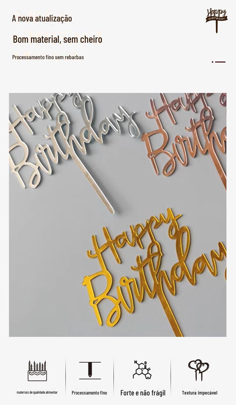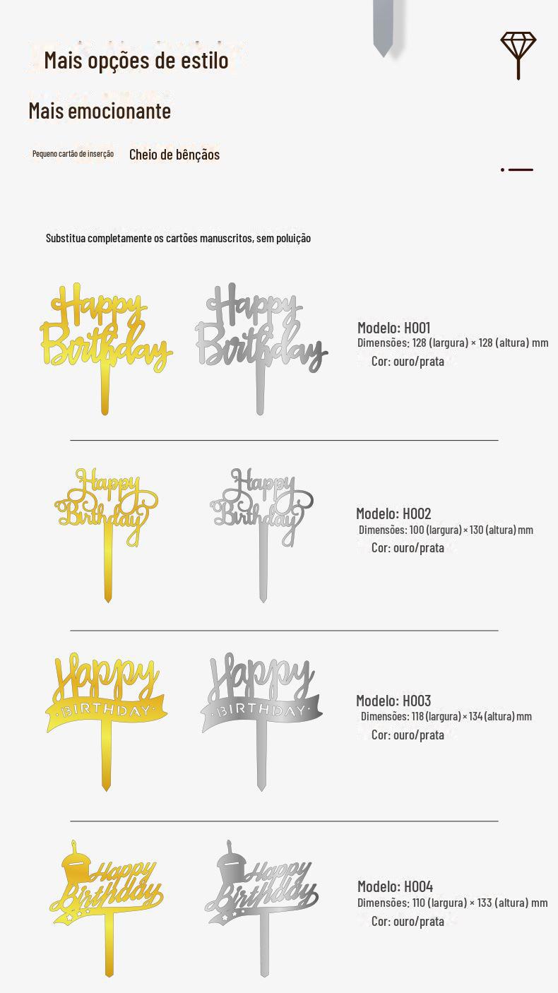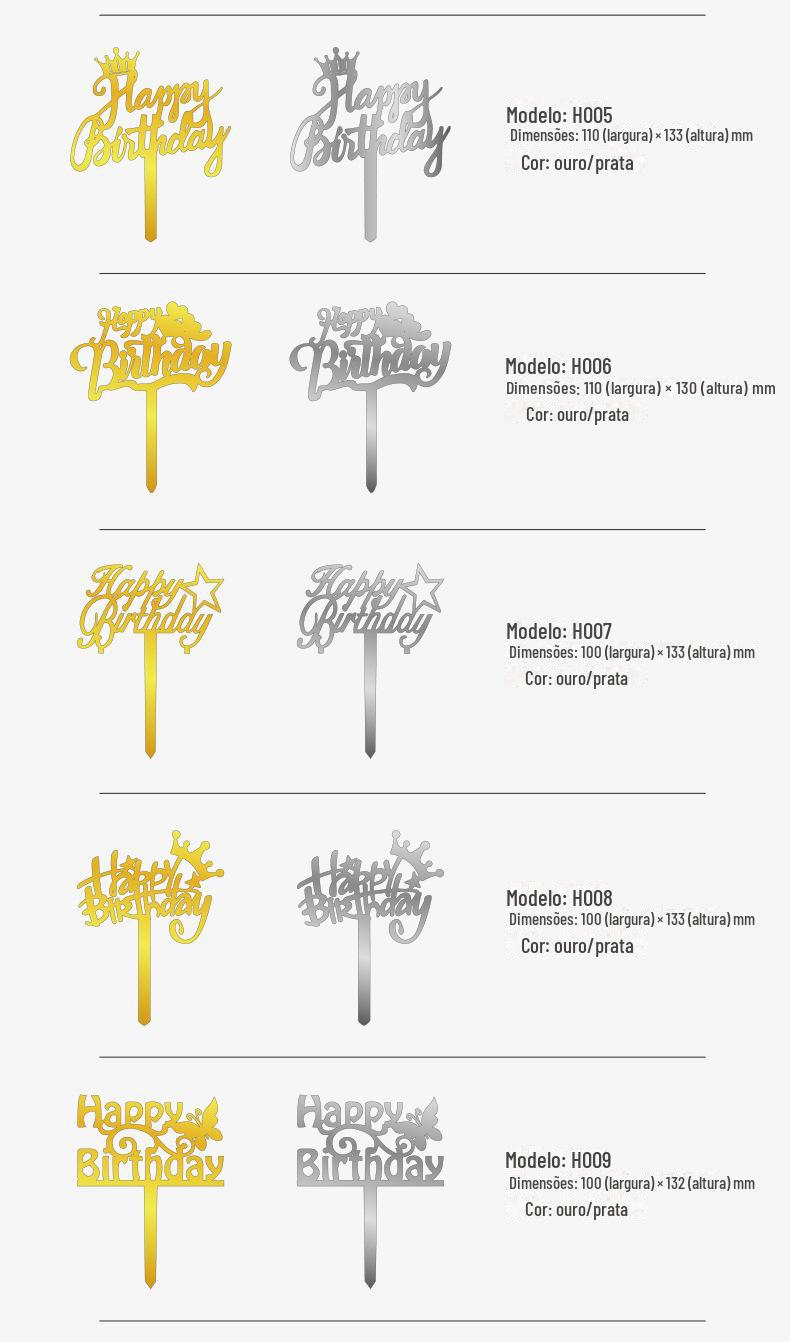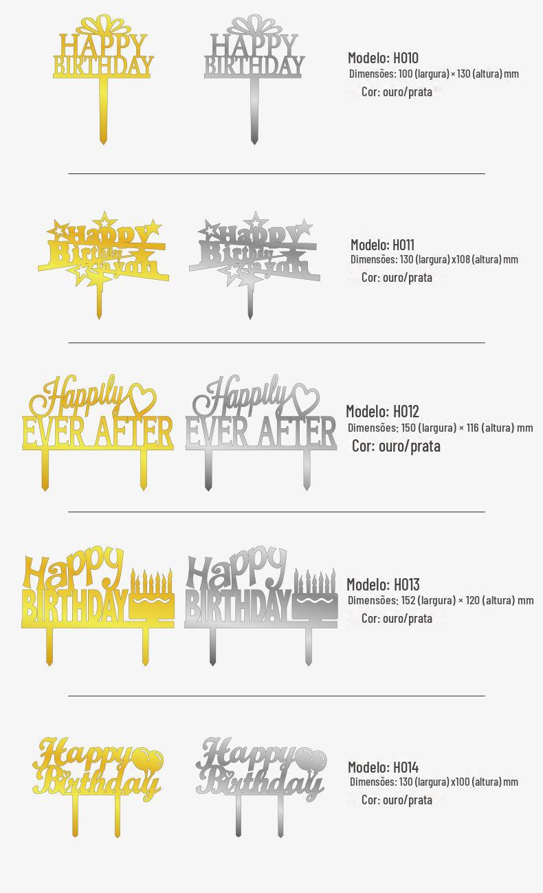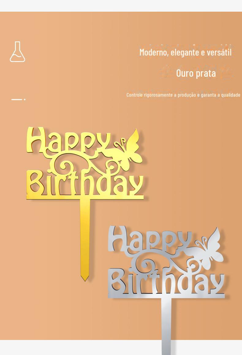 Cartão de bolo feliz aniversário alfanumérico acrílico manuscrito decoração do bolo atacado