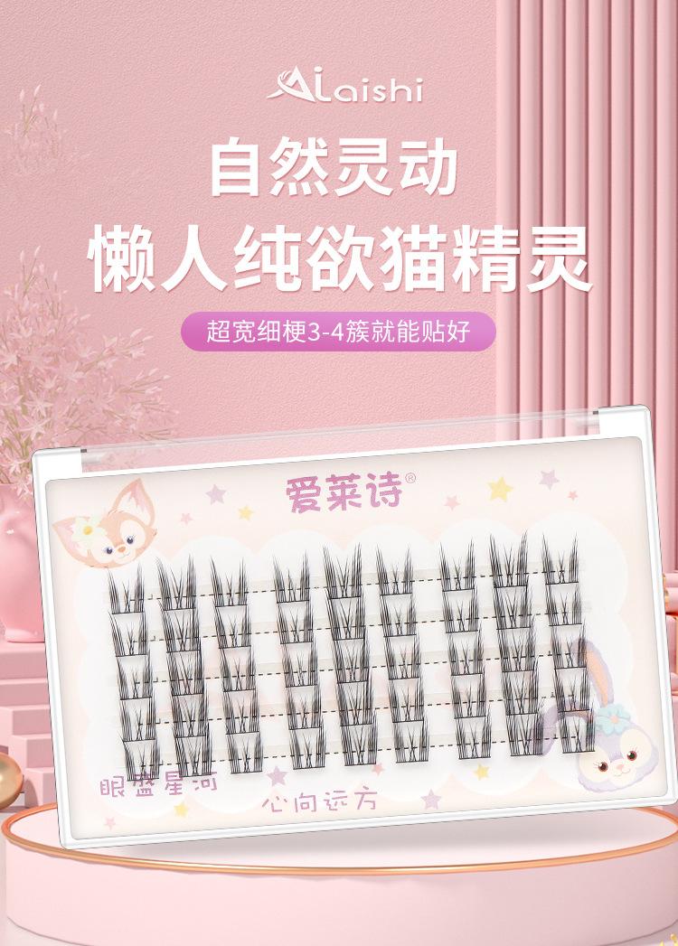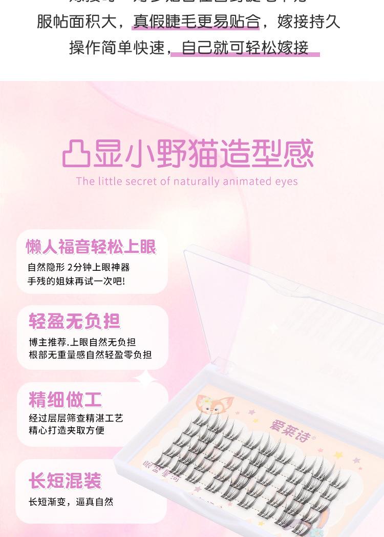 Desejo Puro Pequena Gata Selvagem Segmentado Natural Cacho Único Haste Fina Gato Elfo Cílios Postiços Naturais de Aparência Invisível