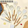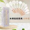 Cross-border novo silicone utensílios de cozinha 10 peças conjunto de cabo de madeira espátula colher de sopa de silicone espátula ferramentas de cozinha antiaderentes resistentes a altas temperaturas