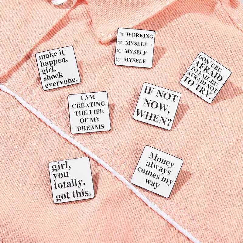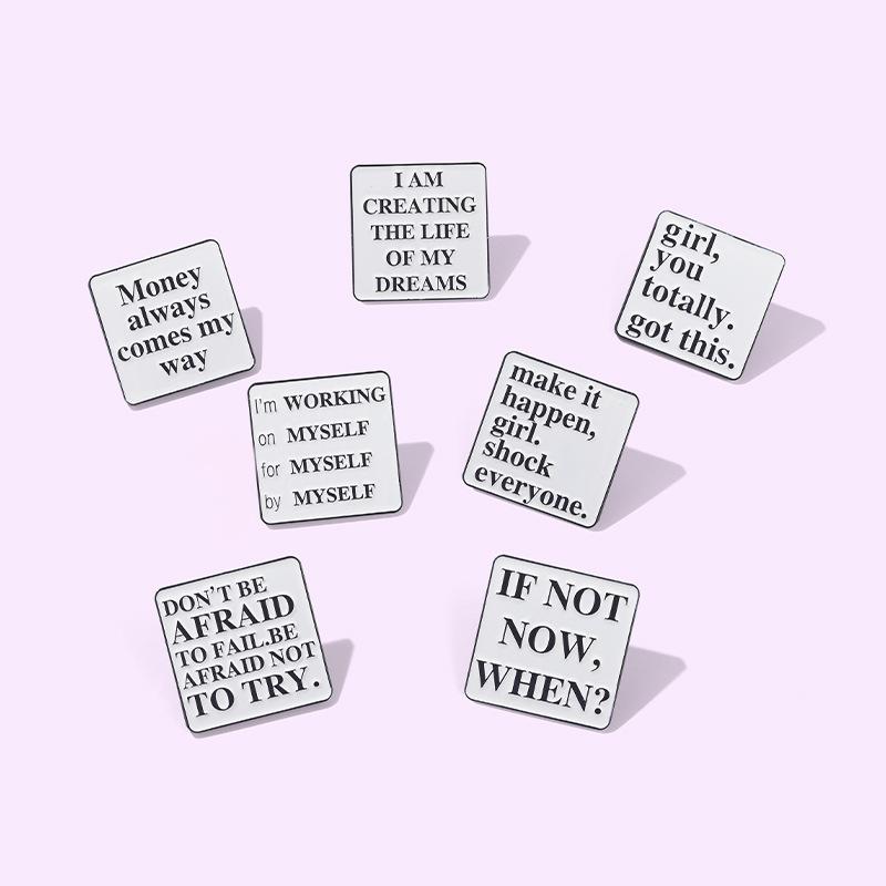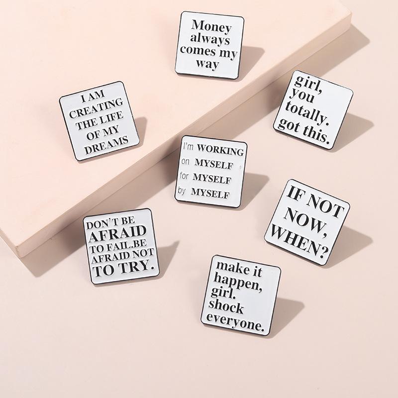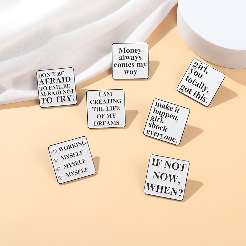 Broche de Texto em Inglês Europeu e Americano Se Não Agora Quando? Broche Broche de Metal Medalha Comemorativa Corsage Joia