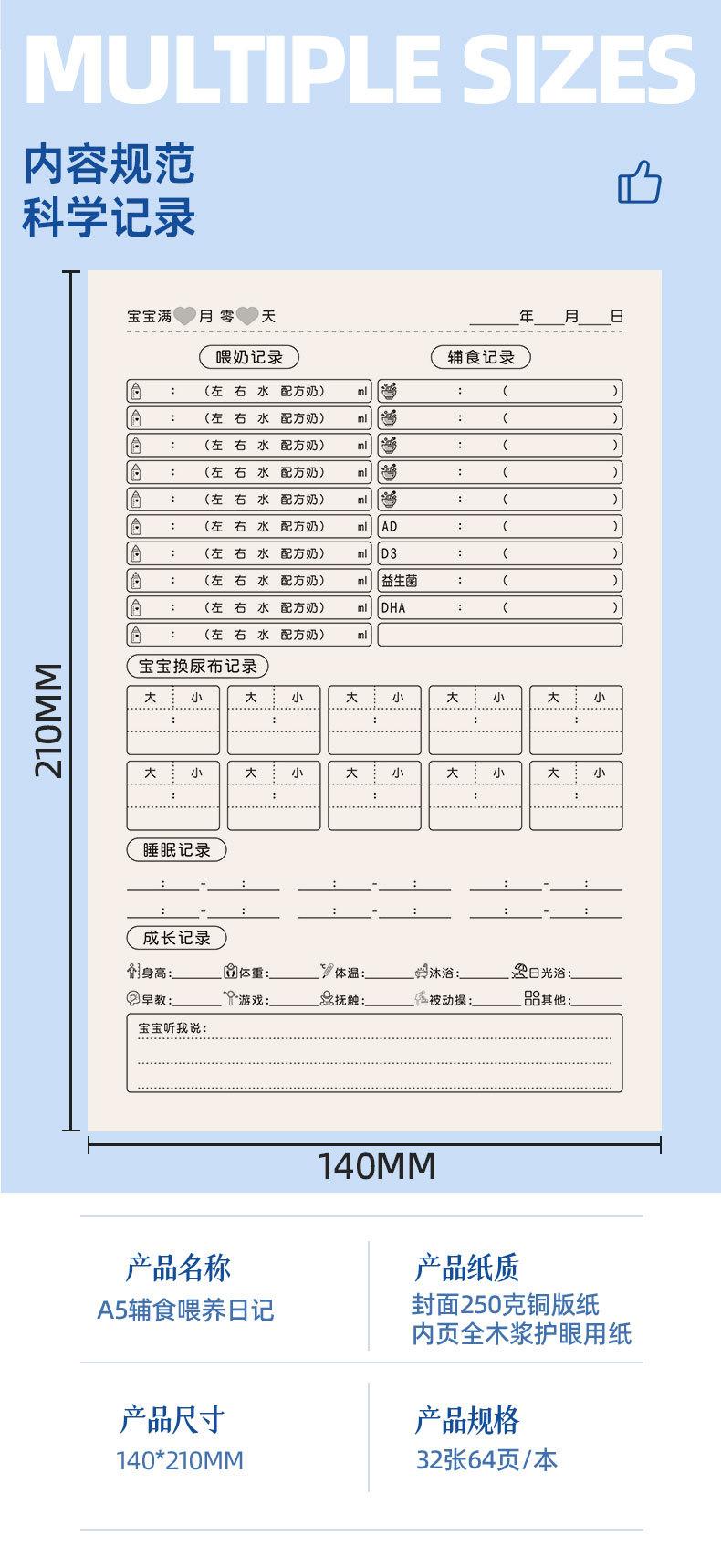 Diário Alimentar Complementar Diário de Alimentação do Bebê Diário de Registro de Crescimento do Recém-Nascido Registro de Alimentação Personalização Manual