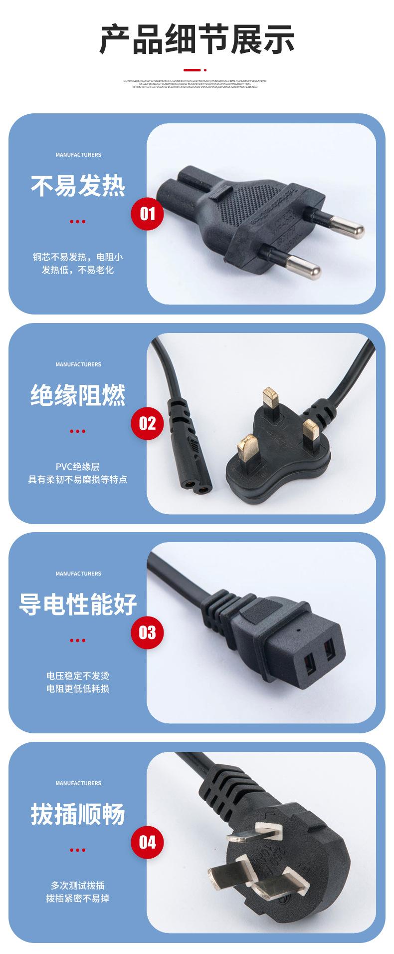 Cabo de alimentação CA de três núcleos com núcleo de cobre britânico, cabo de alimentação de três pinos de bitola britânica grande, corpo de cabo macio de PVC, cabo de alimentação com plugue