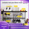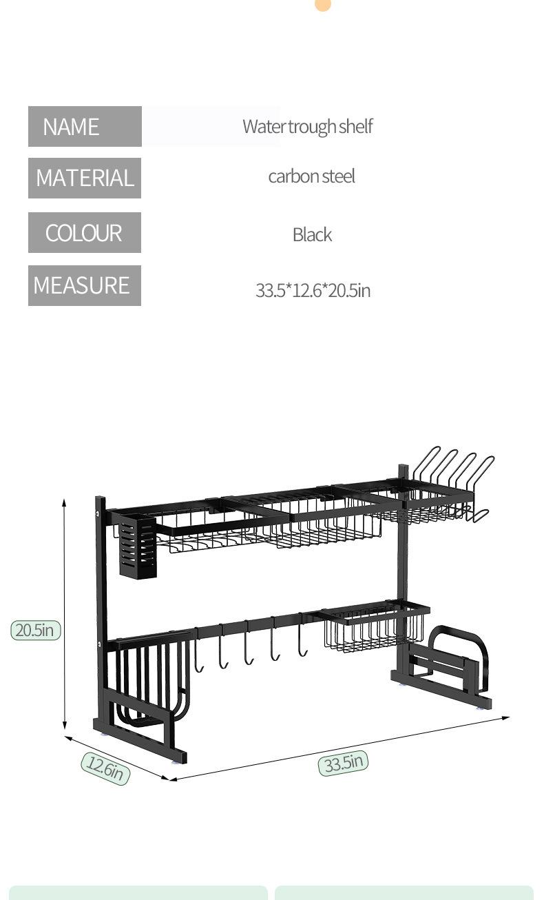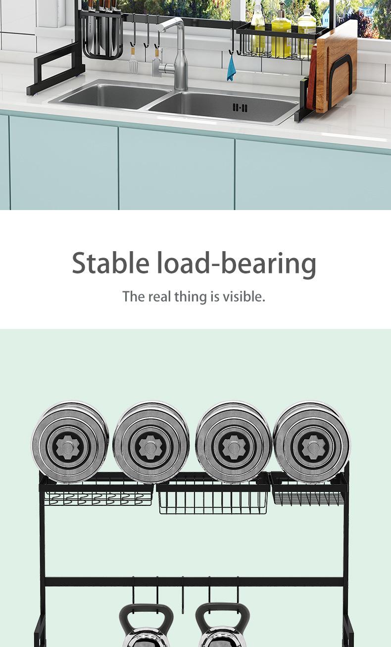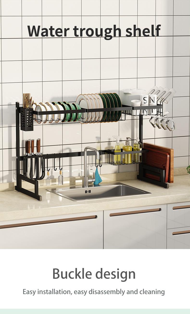 Fixo aço carbono cozinha rack de armazenamento pia tigela de armazenamento de prato rack de drenagem cross-border Amazon