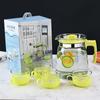 Conjunto de cinco peças de chaleira de cravo: 12 conjuntos por caixa, capacidade da chaleira 2.000 ml, capacidade do copo: cerca de 240 ml. Tamanho da caixa colorida: 22,5 * 23,5 * 14 cm, tamanho da caixa externa: 64,2 * 34,8 * 51,5 cm. Pode imprimir o logotipo, entrega em caixa completa, sem varejo