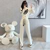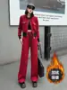 Outono e inverno Novo suéter forrado de lã forrado de lã cintura alta calça reta terno conjunto de duas peças 2023 amazonense mulheres de transporte esportivo