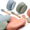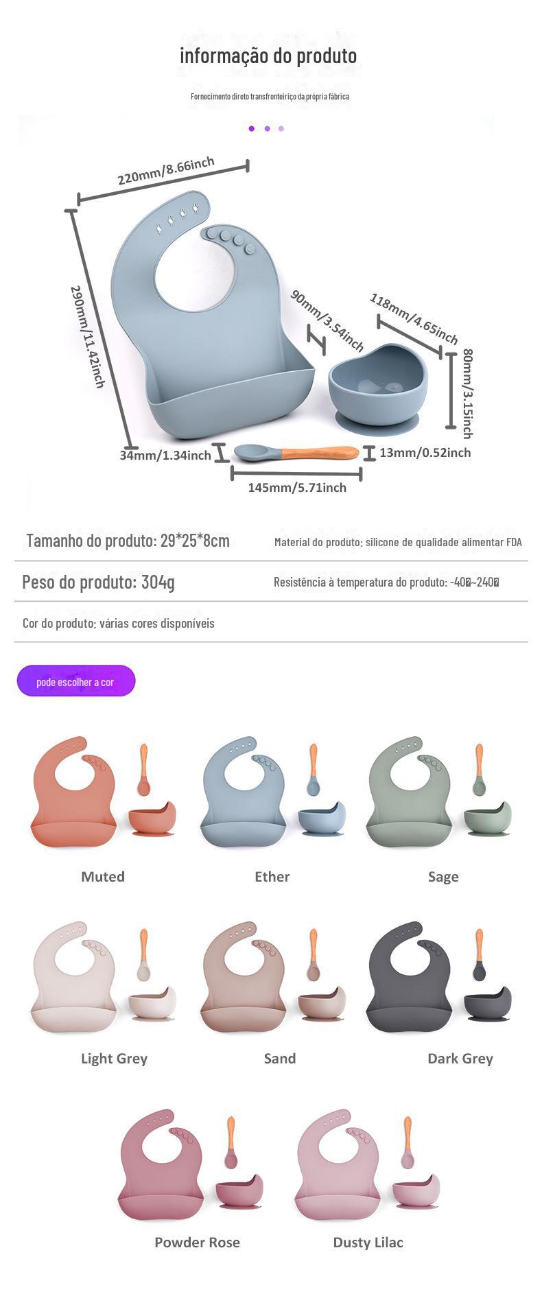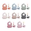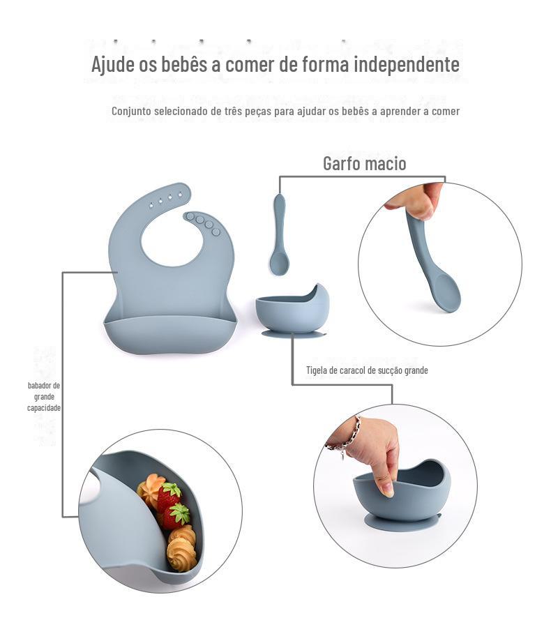 Conjunto de três peças de utensílios de mesa infantis de silicone de venda quente no exterior, ventosa para bebês, tigela de comida, babador, colher, anti-queda integrado