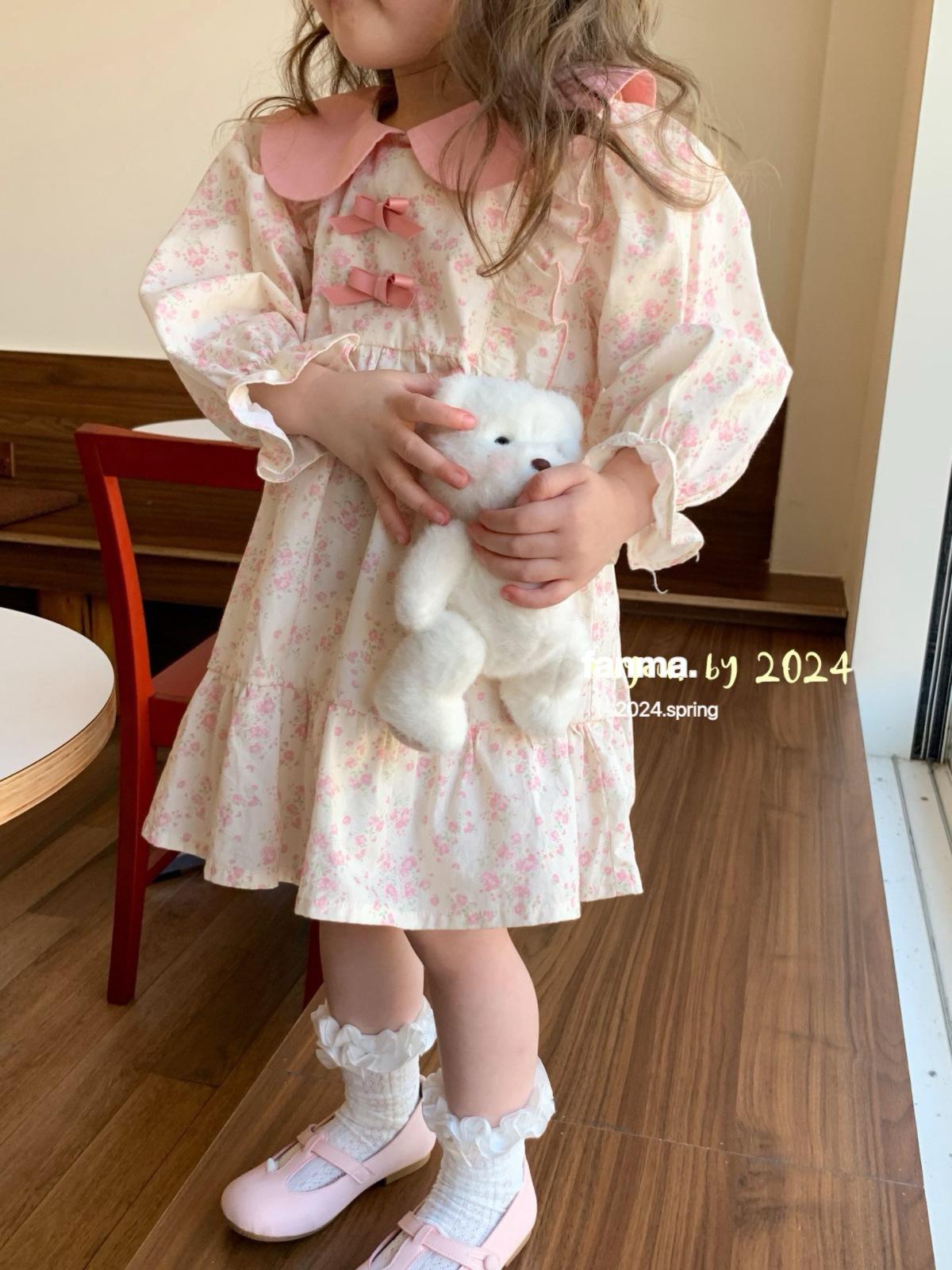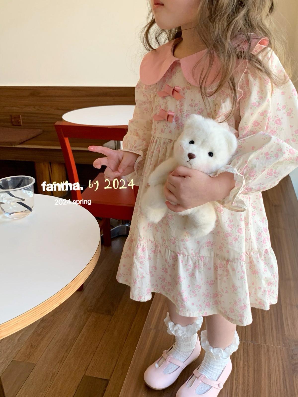 Estrela das crianças redonda estilo francês das meninas temperamento floral coreano vestido de princesa das crianças por atacado primavera e vestido de outono