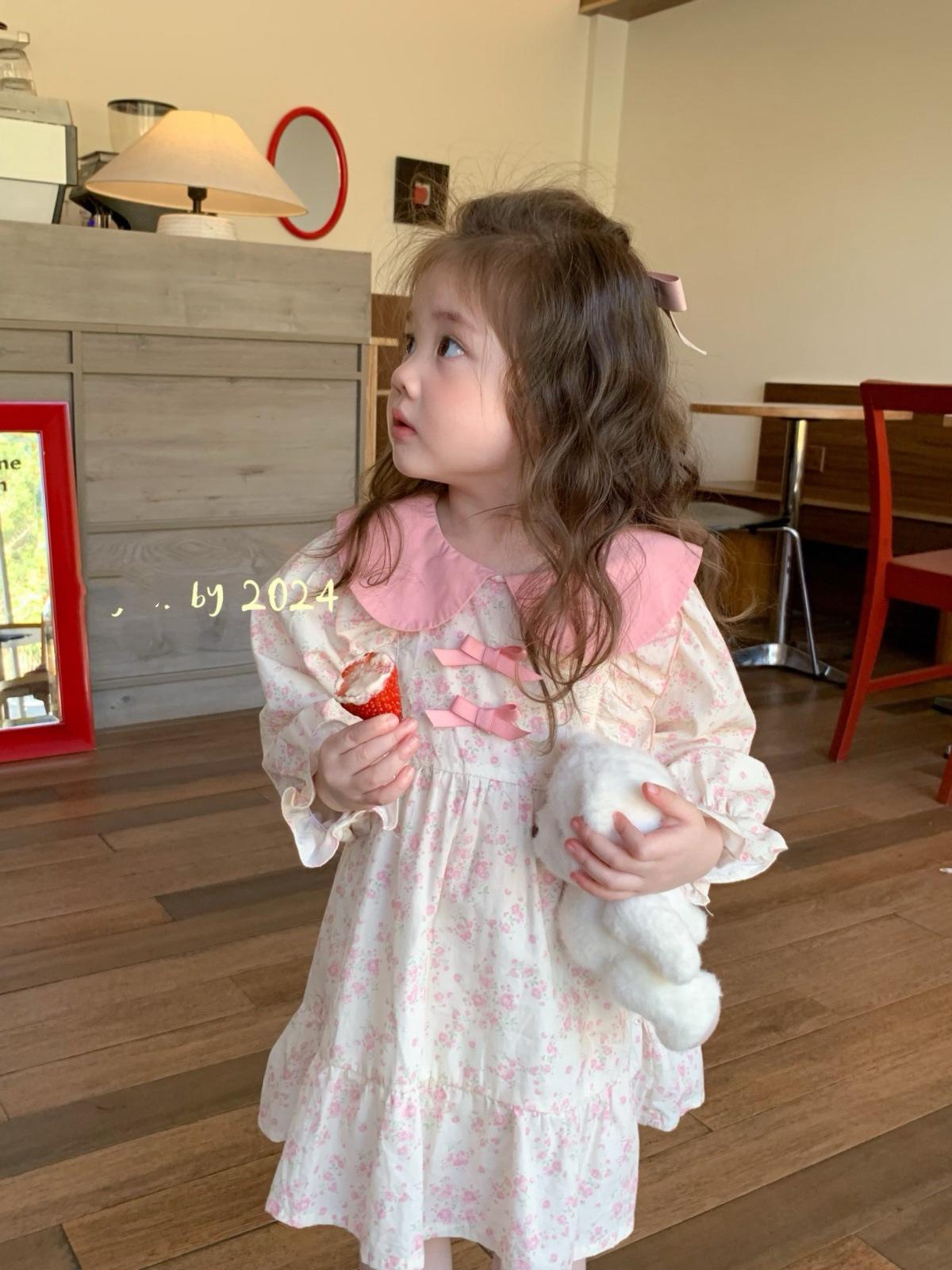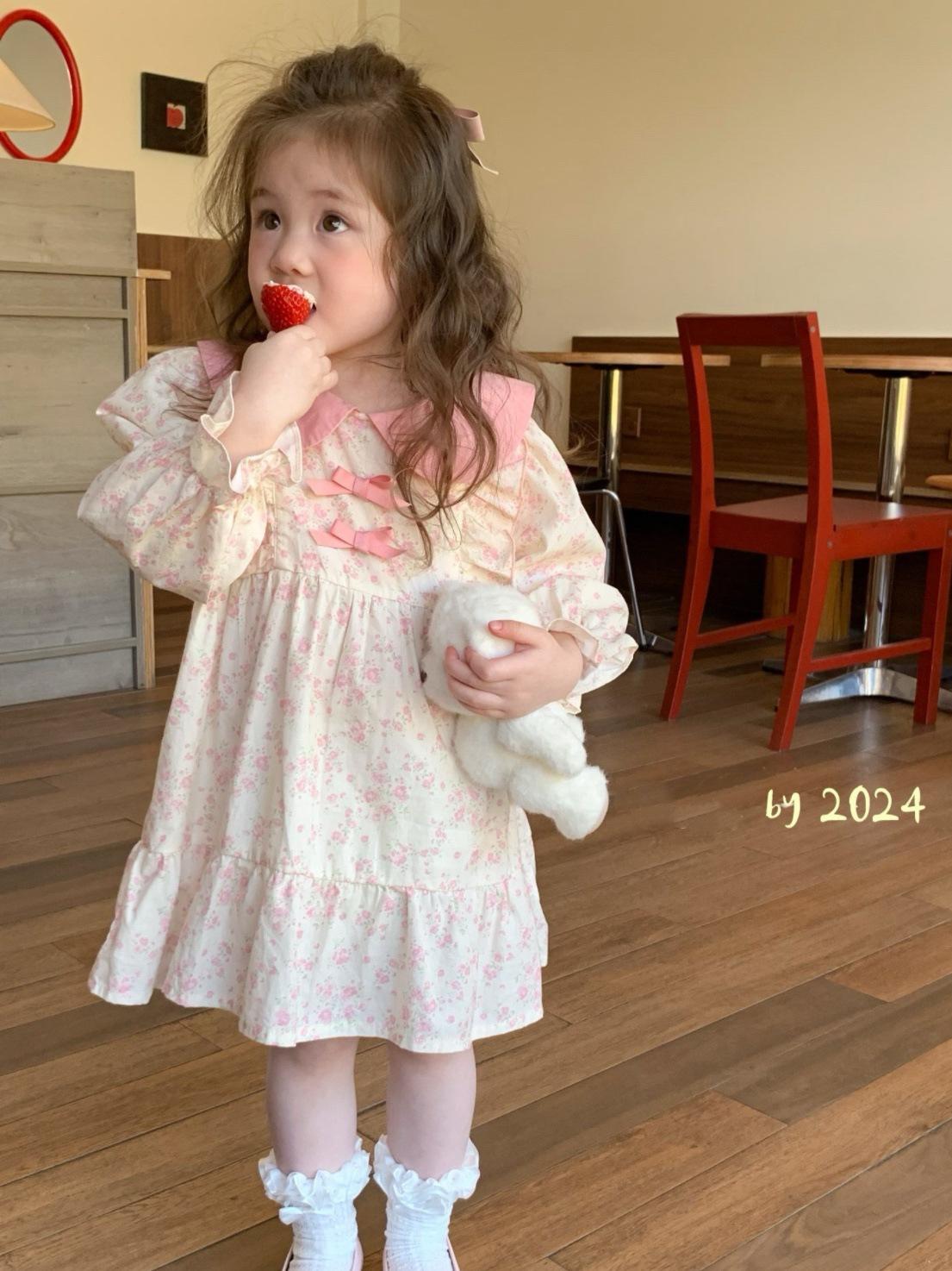 Compre Estrela das crianças redonda estilo francês das meninas temperamento floral coreano vestido de princesa das crianças por atacado primavera e vestido de outono no atacado no Joom.pro