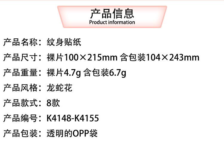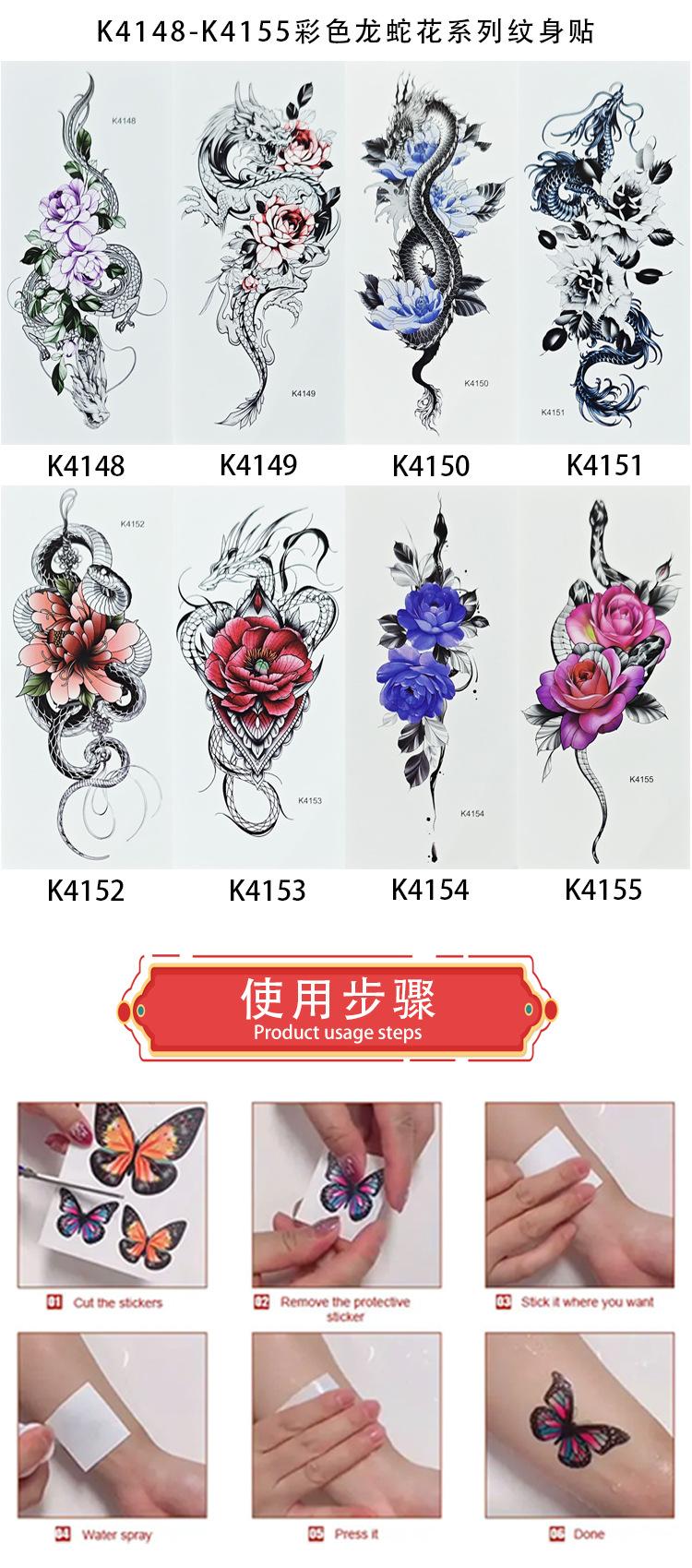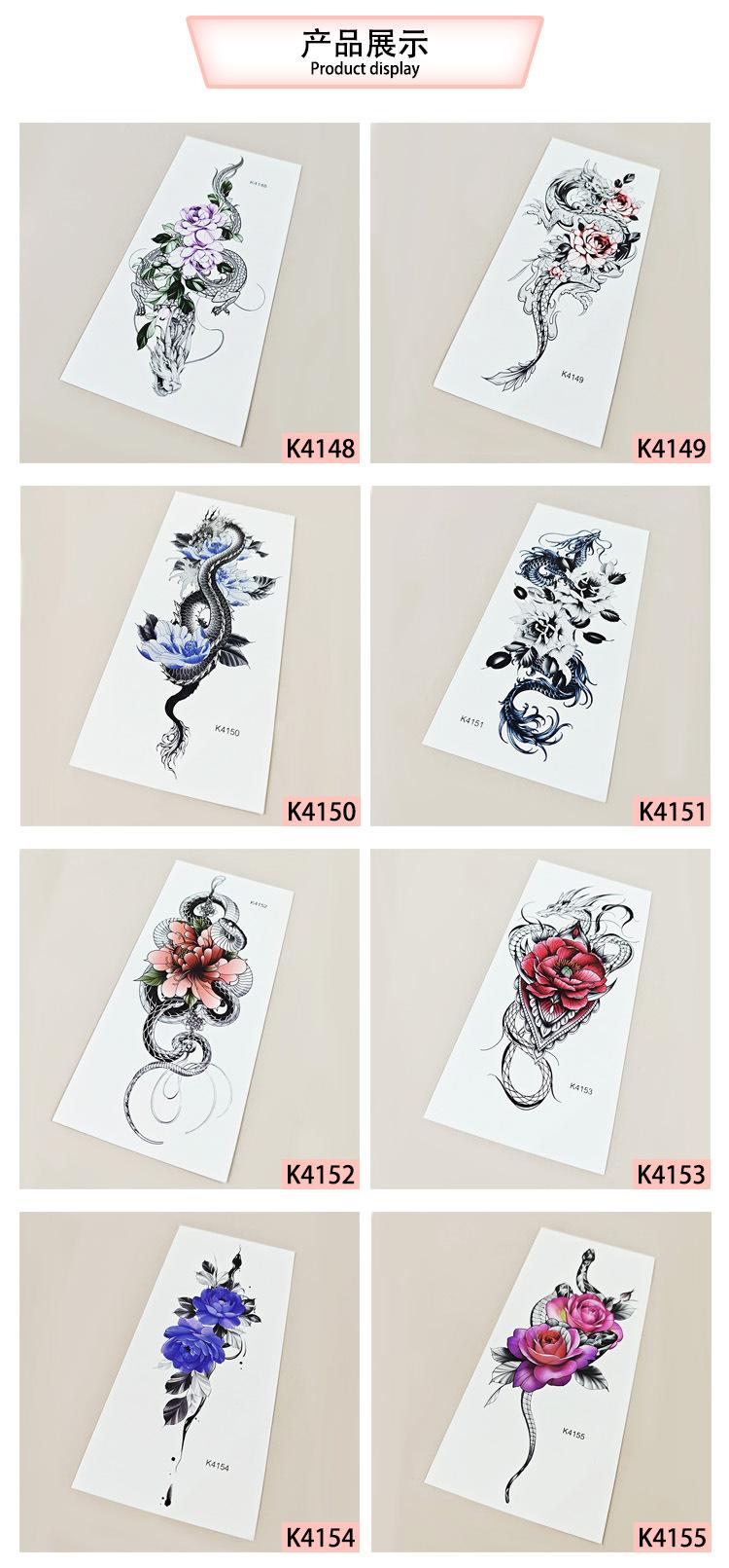 Cross-border atacado body art adesivos de tatuagem dragão padrão de cor cobra padrão adesivos de tatuagem à prova d'água