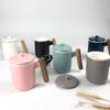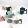 Caneca casual estilo escandinavo, copo de água criativo e literário, xícara de café, xícara de cerâmica com alça de madeira, logotipo personalizado