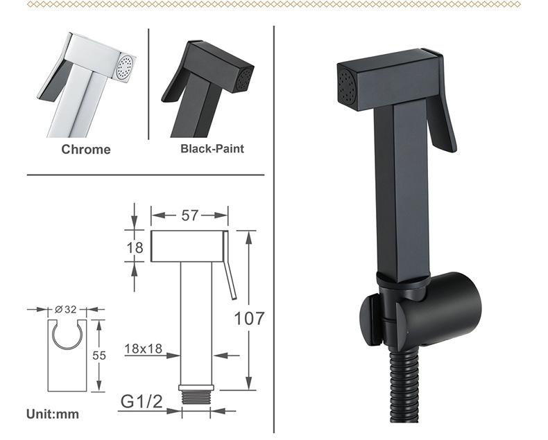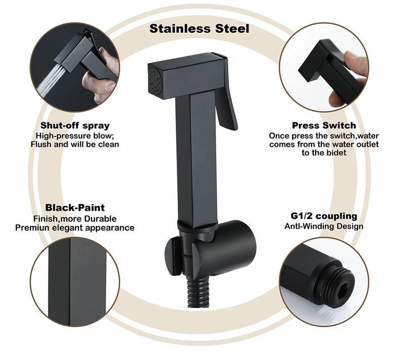 Pistola de pulverização terno aço inoxidável quadrado preto pistola de pulverização 1,5 metros anti-enrolamento mangueira fabricantes HI09042A