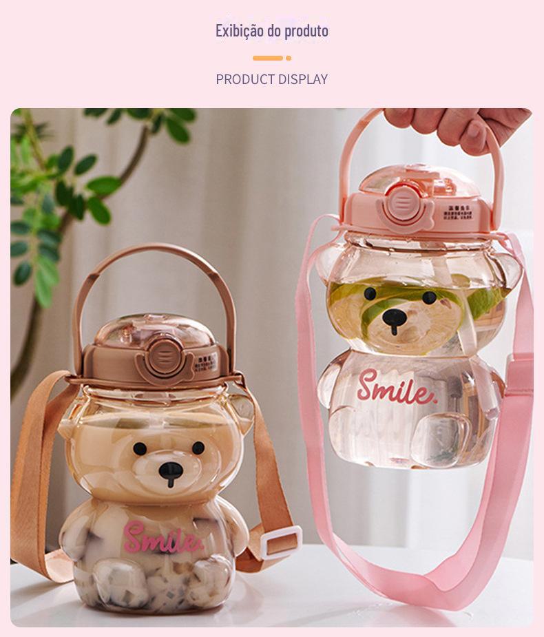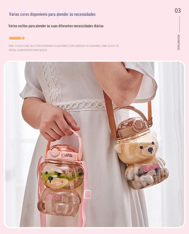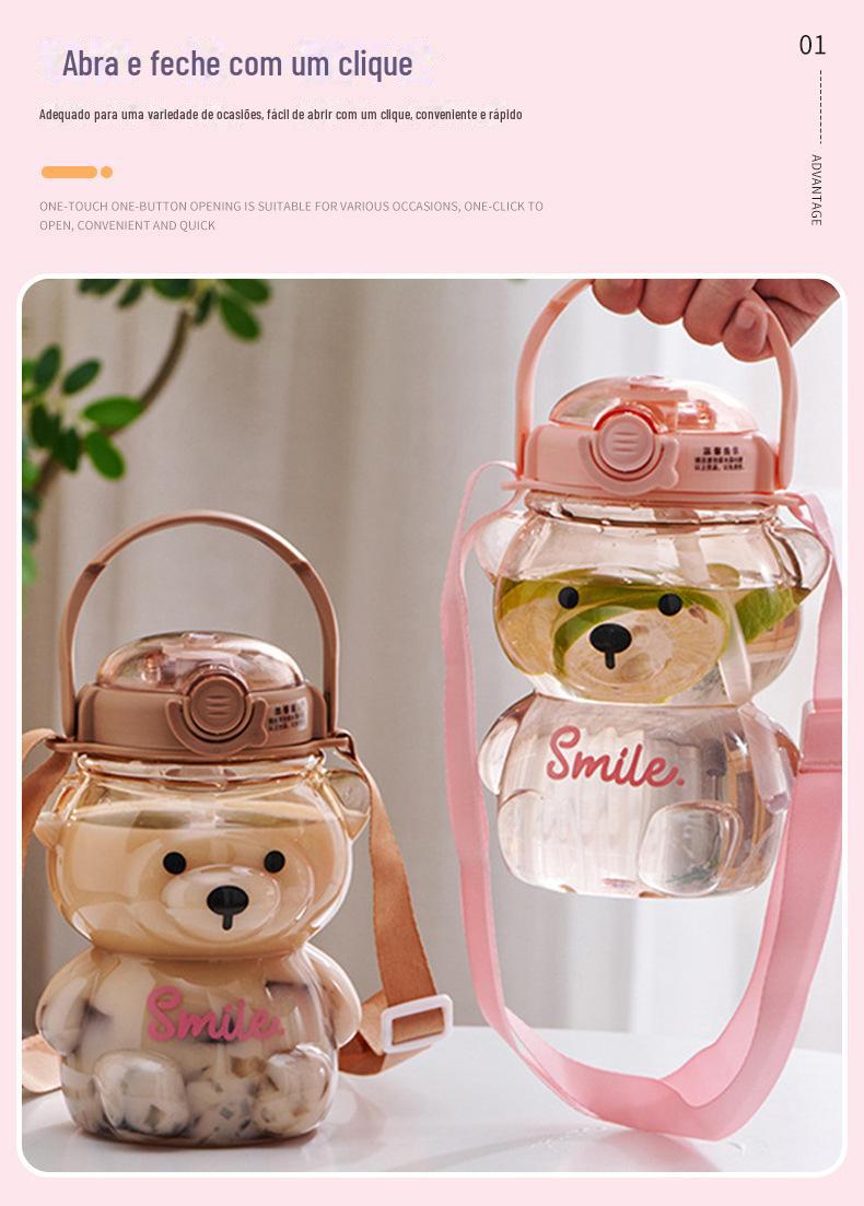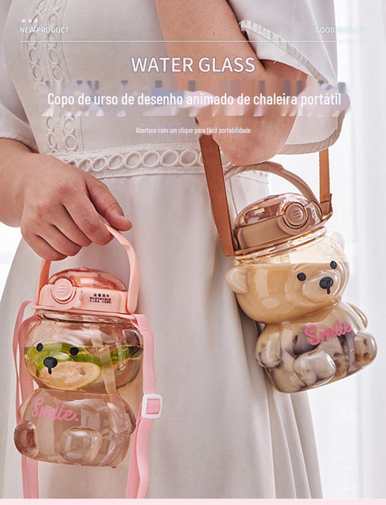 Chaleira de plástico de palha de grande capacidade de processamento de copo de água personalizado bonito urso chaleira portátil chaleira dos desenhos animados copo urso