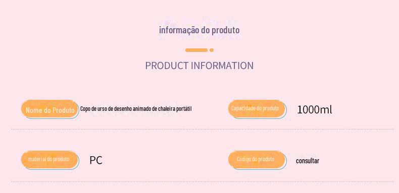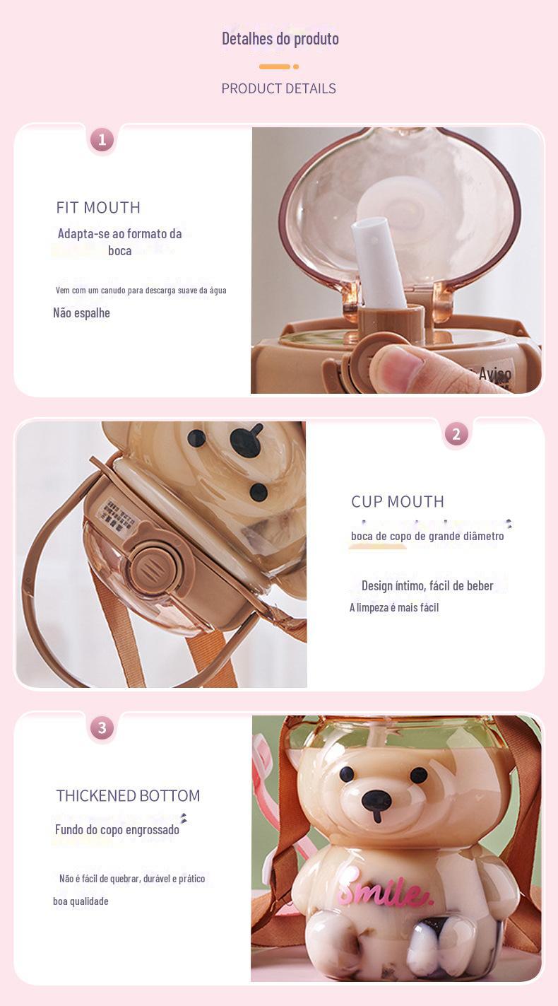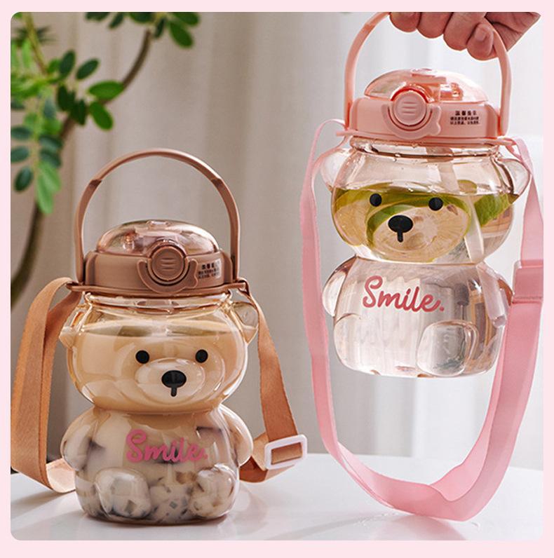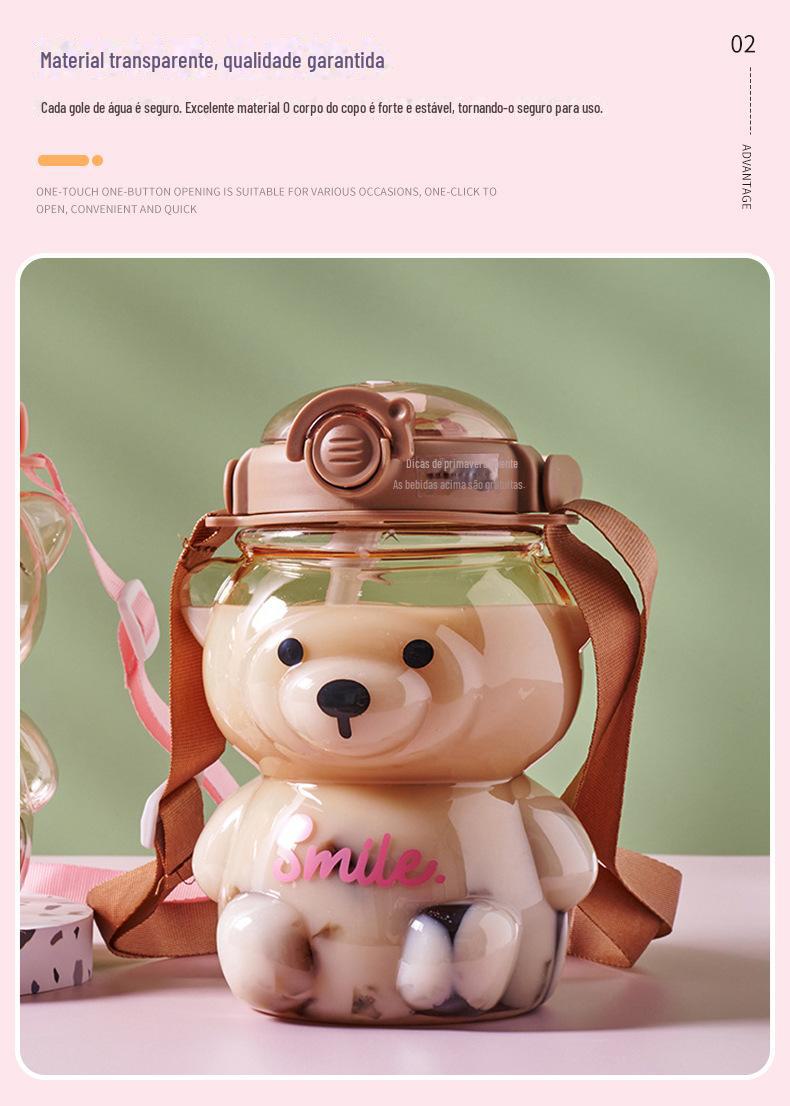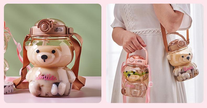 Chaleira de plástico de palha de grande capacidade de processamento de copo de água personalizado bonito urso chaleira portátil chaleira dos desenhos animados copo urso