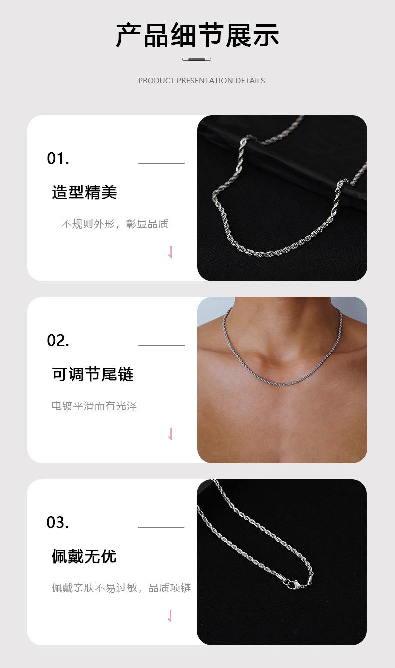 Corrente Torcida de Aço Titânio Masculina 2025 Atacado de Fábrica Tamanho Completo Não Desbota Simples Nicho Estilo Unissex Joias