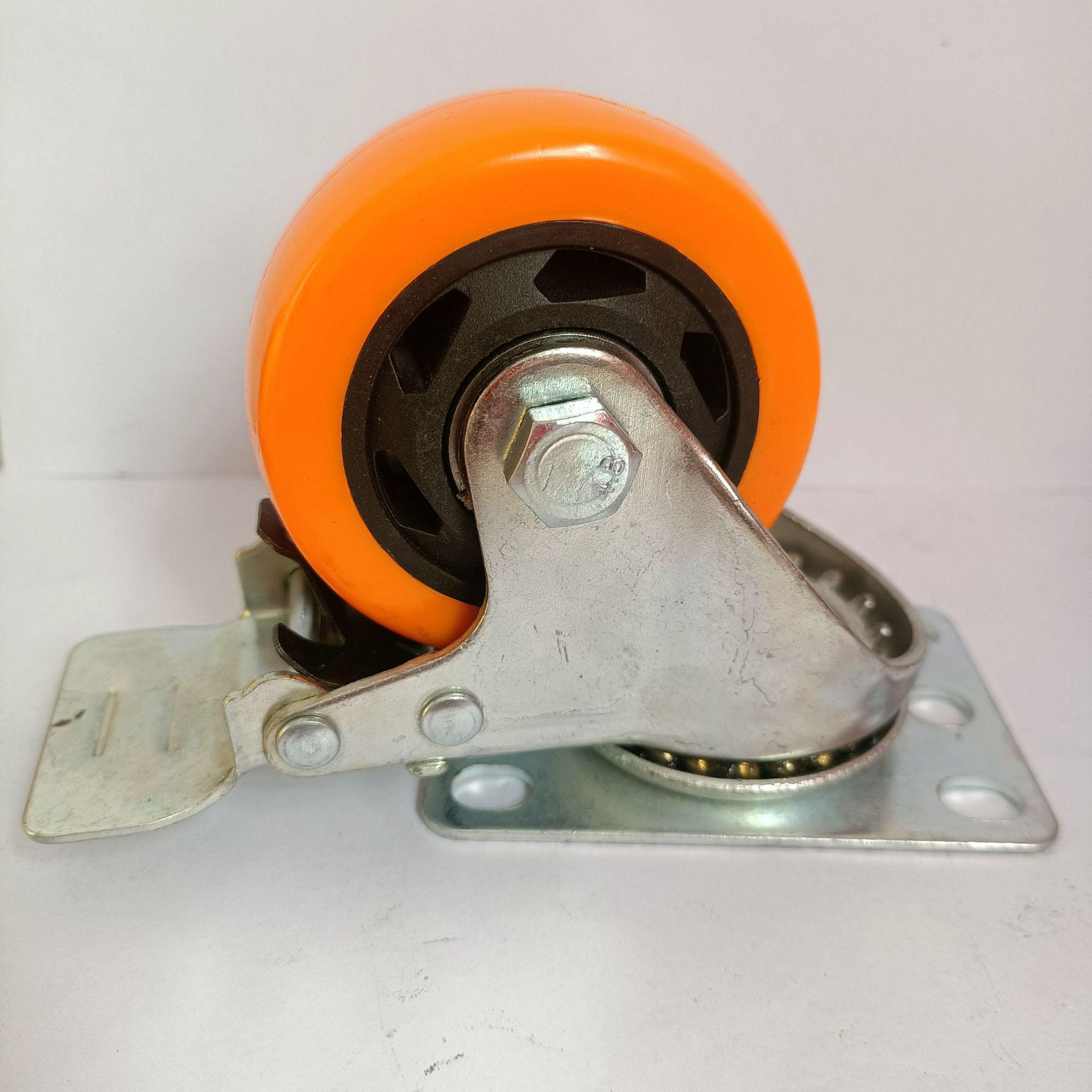 Fornecedor Fabrica Rodízios Giratórios em Forma de Flor de 4 polegadas com Freios para Móveis de Supermercado, Rodas Laranjas de Poliuretano de Tamanho Médio