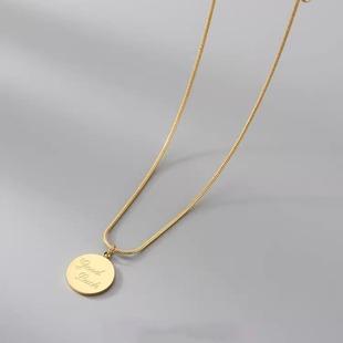 Europeu e americano ins simples high-end inglês redondo pingente colar personalidade tendência gravada titânio aço 18k ouro clavícula corrente