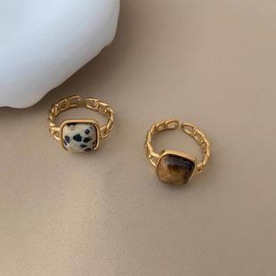 Anel aberto com pedra de olho de tigre natural retrô francês, aço de titânio não desbota, design de nicho de ouro 18K, anel de alta qualidade