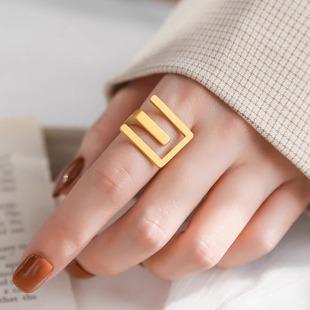 Anel francês retrô exagerado em forma de montanha, letra E, aço titânio, ouro 18k, anel de dedo indicador sem desbotamento, joias geométricas