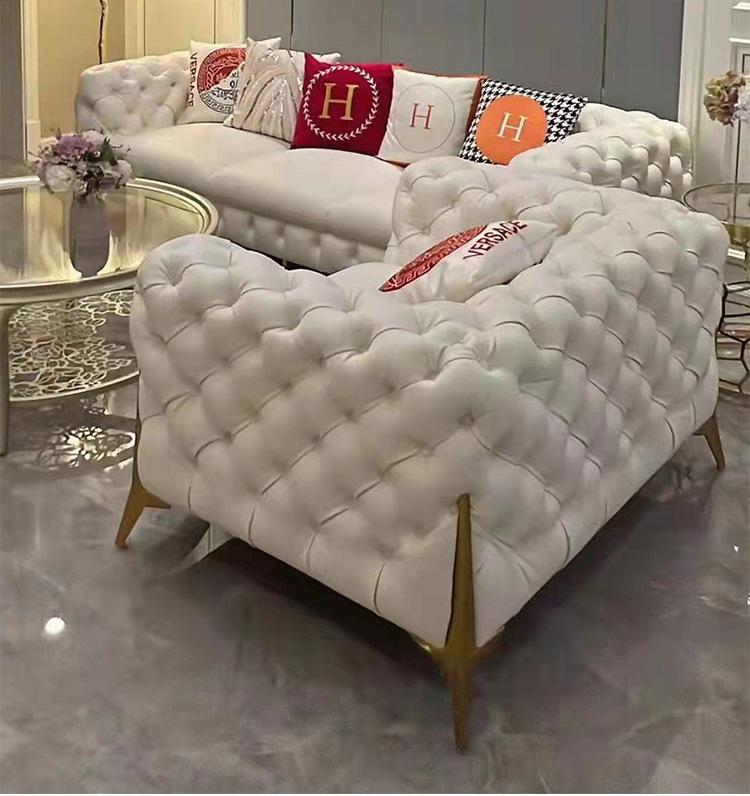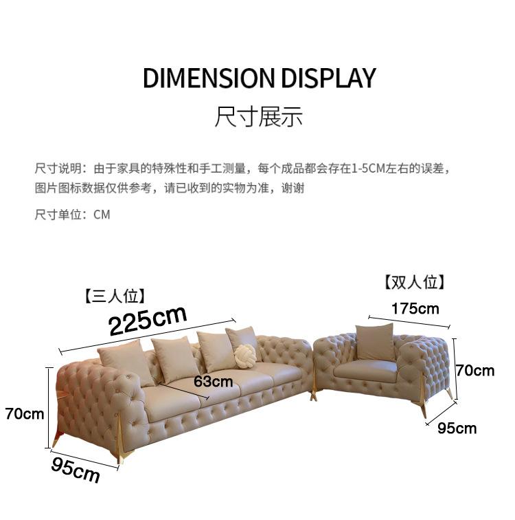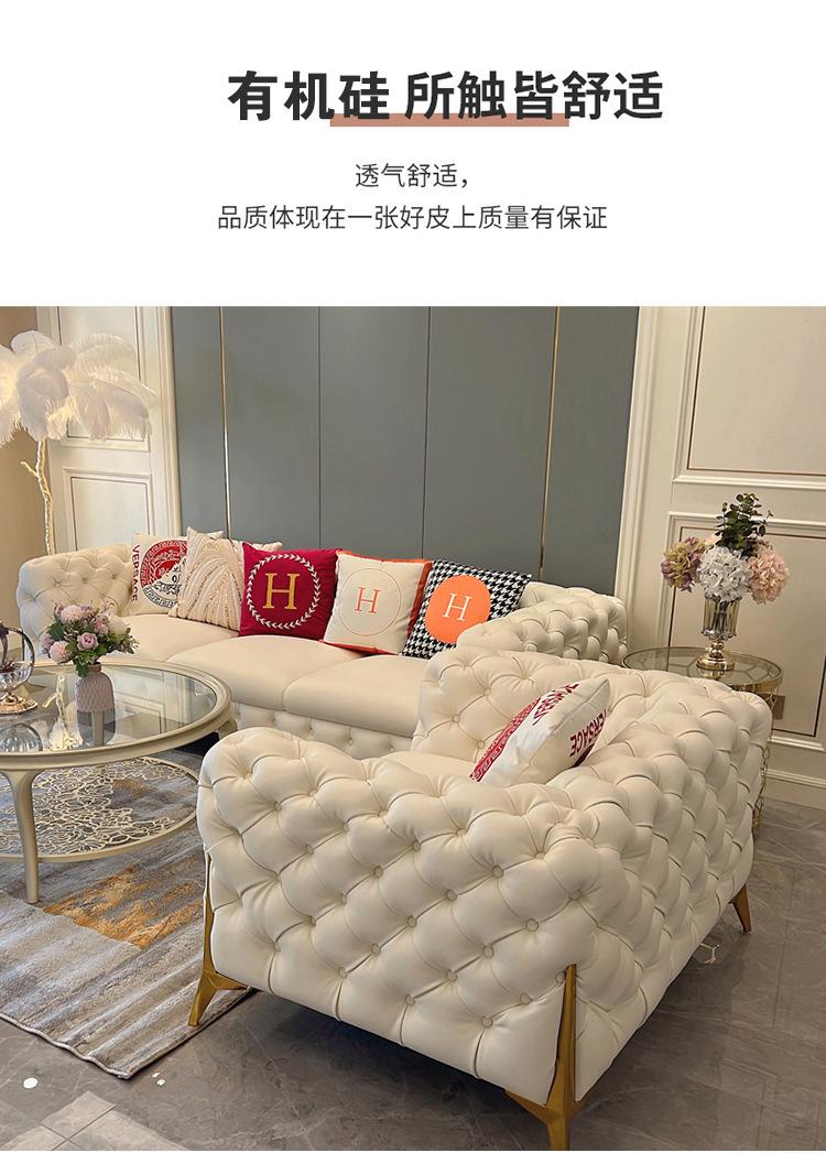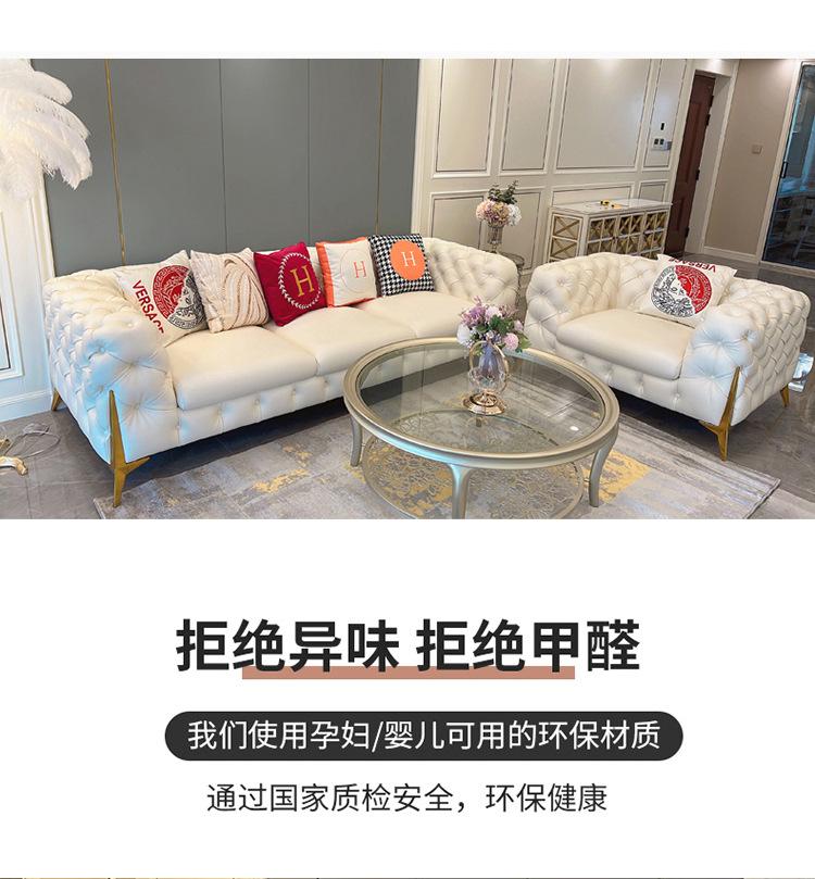 Sofá de luxo leve estilo americano com fivela, sala de estar, apartamento pequeno, fileira reta, três pessoas, internet, celebridade, Napa Pi, arte, móveis combinados