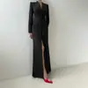 Francês Novo Nicho V-Neck Hollow Vestido de manga comprida Temperamento Cintura A-Line Saia para Mulheres 2025 Primavera Cross-Border Europa e América