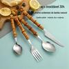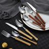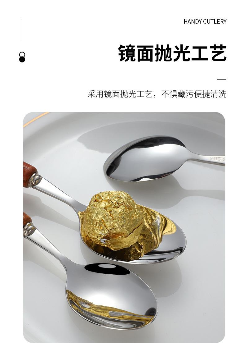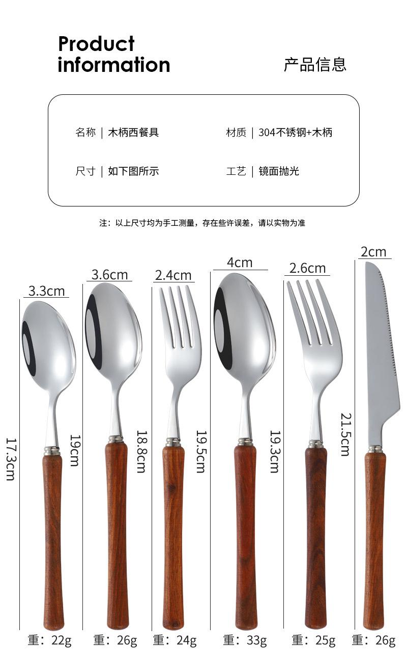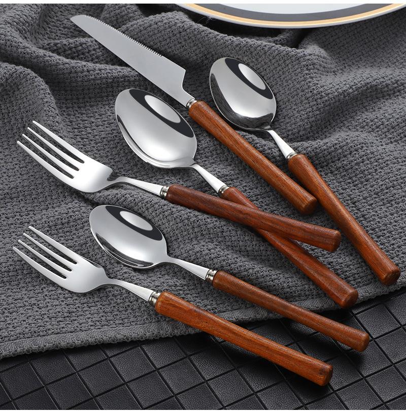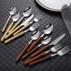 Estilo japonês pera cabo de madeira 304 faca de aço inoxidável e colher de garfo Conjunto de louça de comida ocidental de aço inoxidável faca de bife e garfo colher de sobremesa