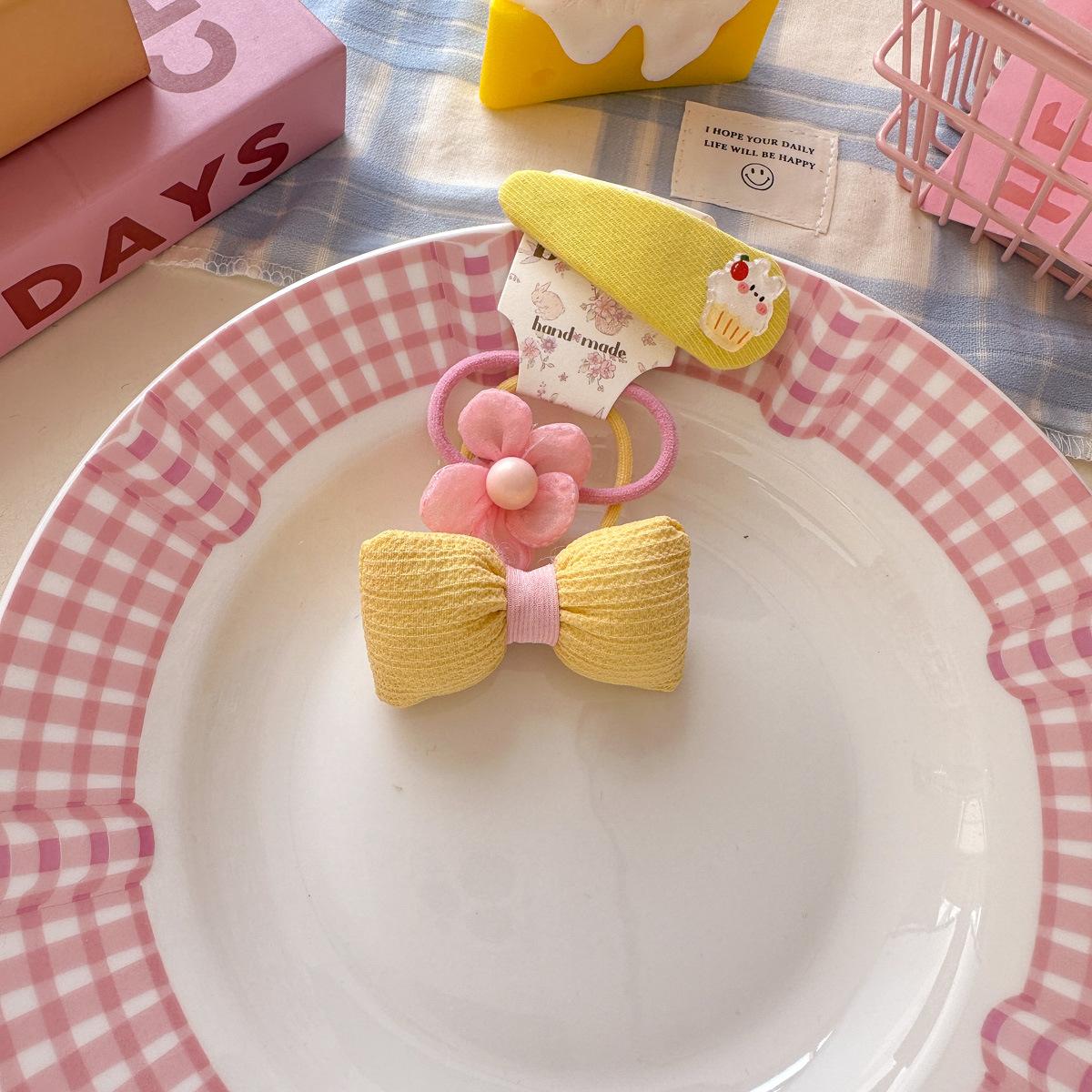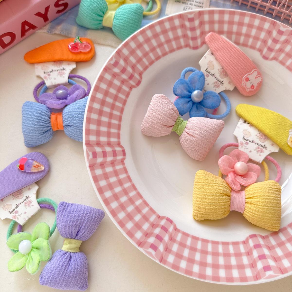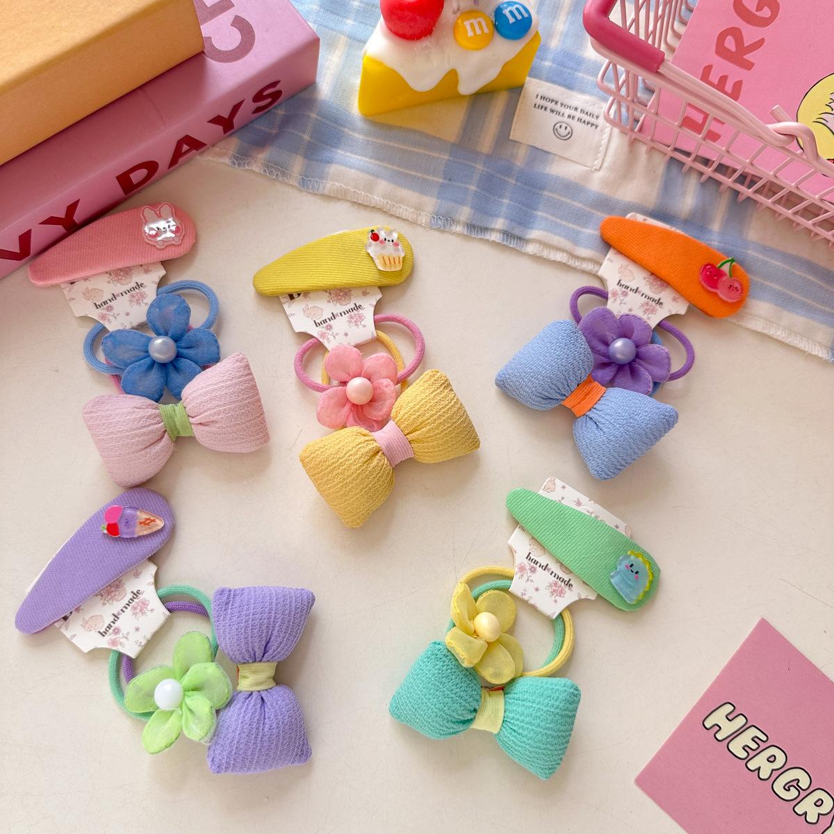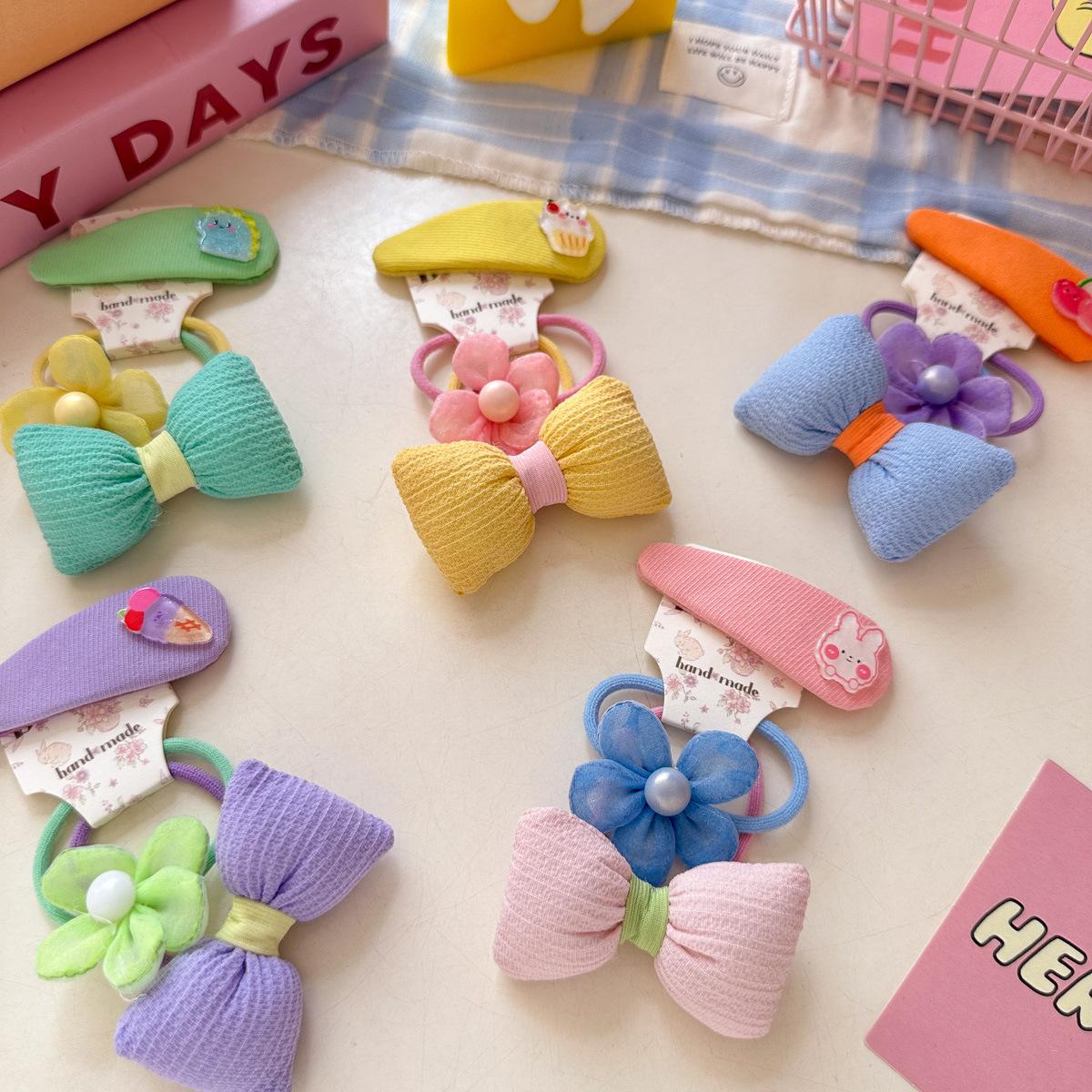 Estilo coreano doce infantil acessórios de cabelo conjunto tecido flor hairpin algodão laço hairpin hairpin hairpin meninas 'side clip