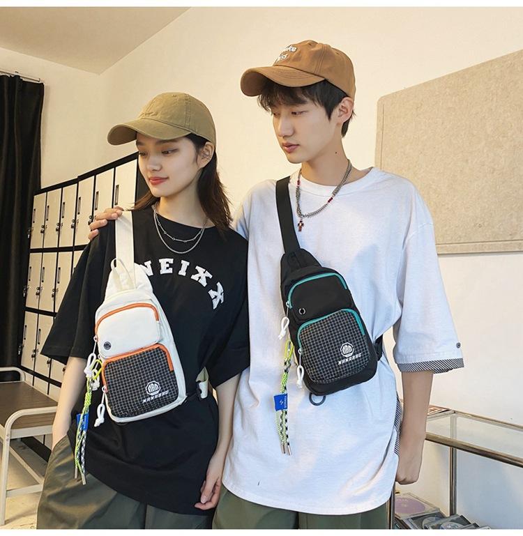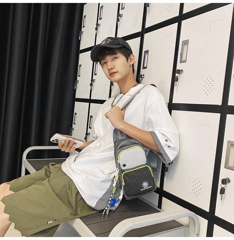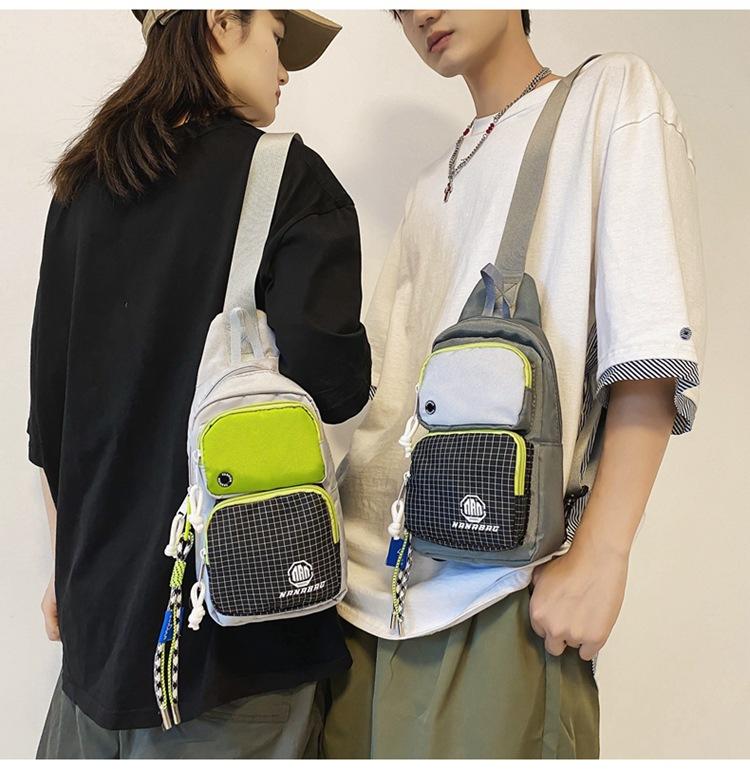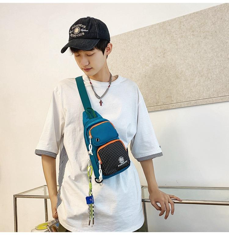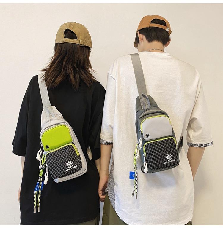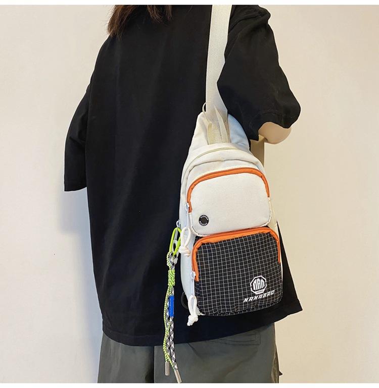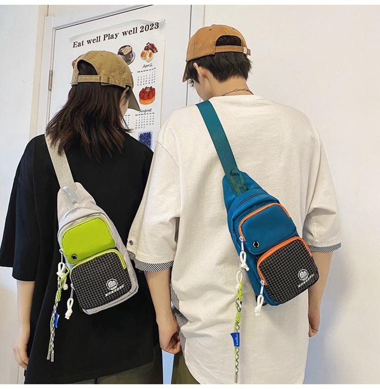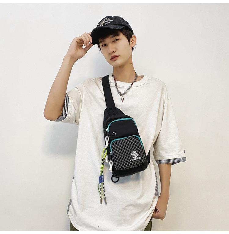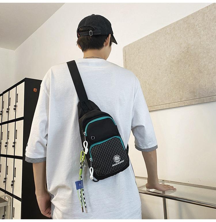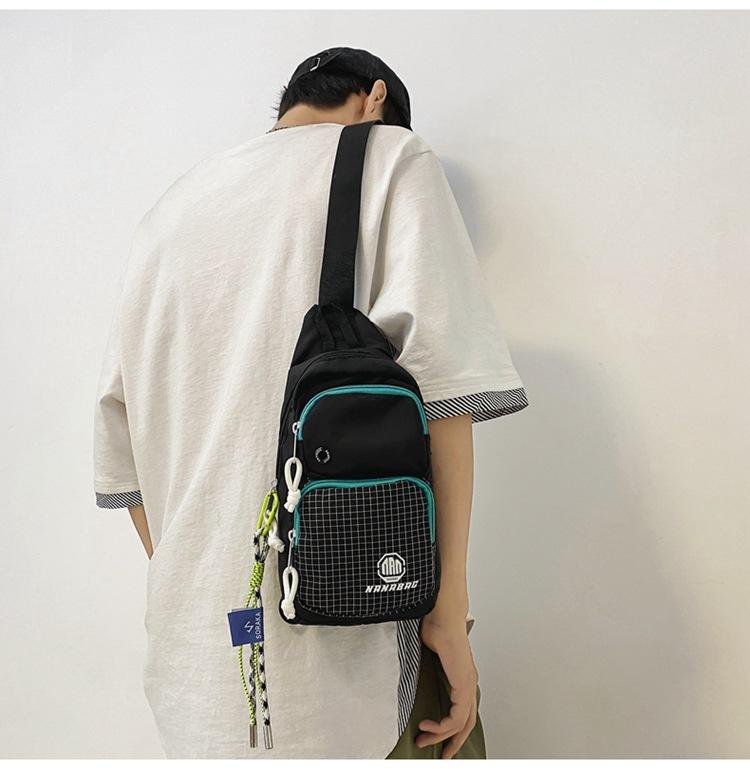 Saco de peito casual Masculino 2023 nova marca de moda de rua Plaid mochila simples de equitação simples ombro crossbody bolsa de telefone