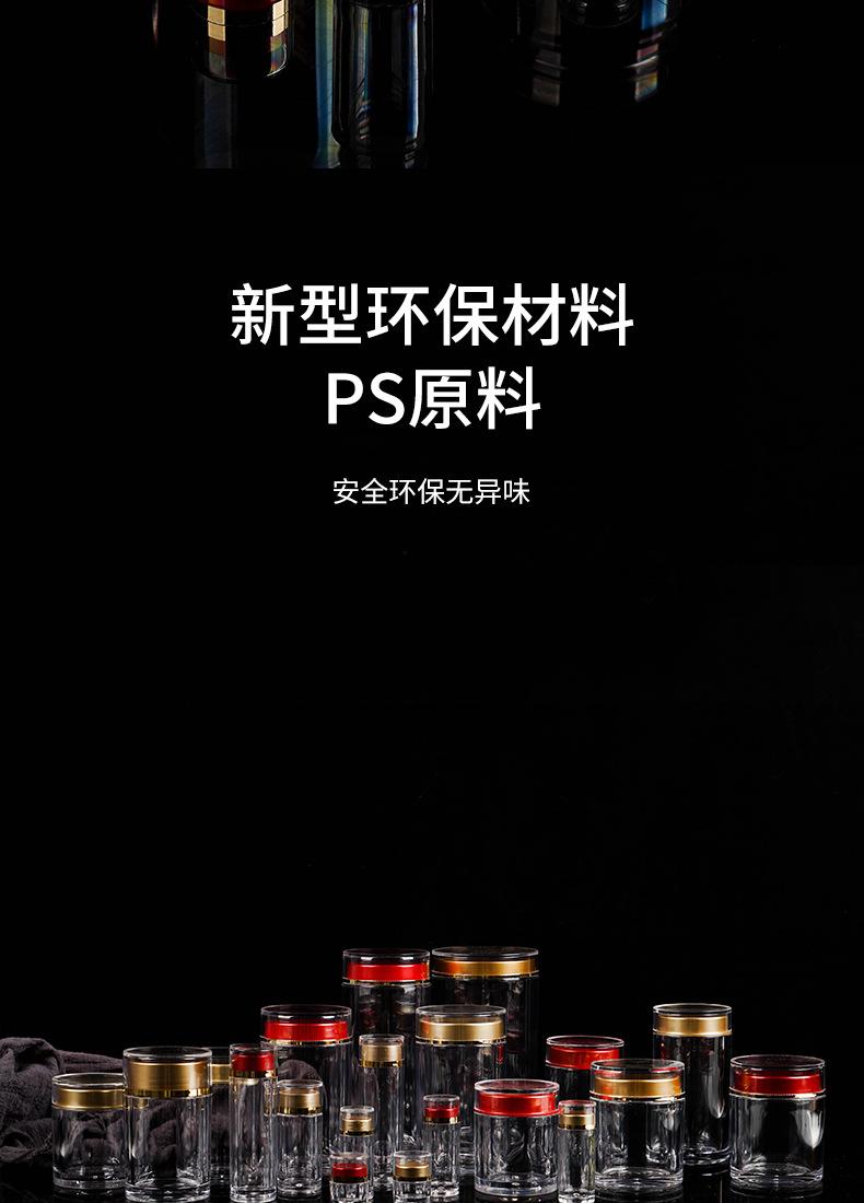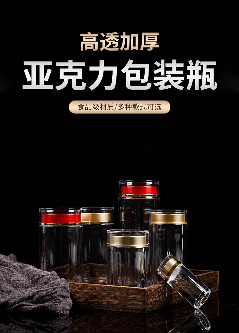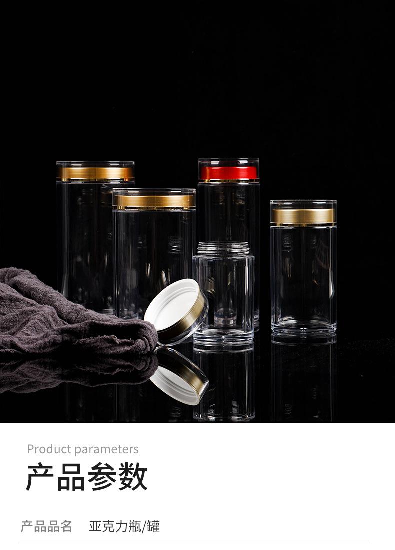 Produtos acrílicos de qualidade alimentar de qualidade alimentar, transparente, cápsula, garrafa, embalagem plástica, frasco selado, grande sub-garrafa
