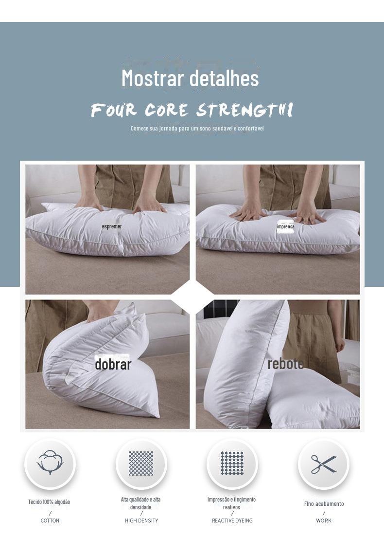 Travesseiro Interno de Hotel Algodão Branco Macio Travesseiro de Hotel Cama e Café da Manhã Não Deforma Alta Elasticidade Pena Veludo Fabricante Atacado