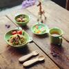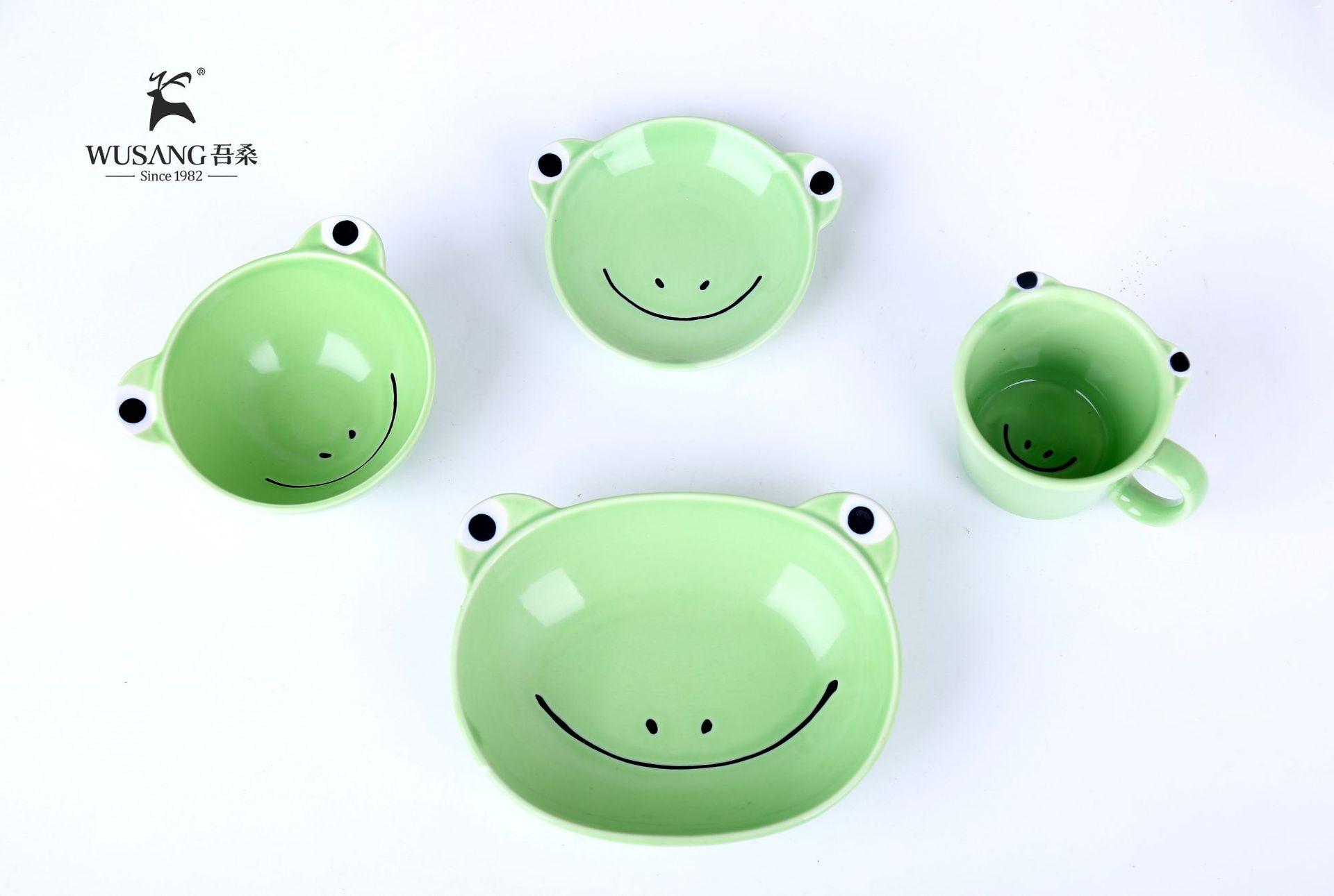 Frog bowl 11.3*5cm, Frog plate 11.8*2.3cm, Tea blue cup 7.5*9.5cm, Han Bai cup 7.5*9.5cm