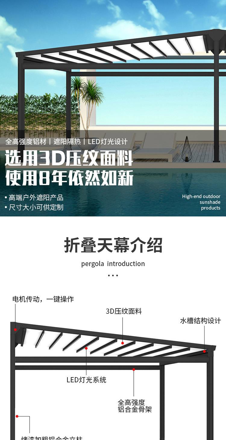 Toldo Dobrável Elétrico para Exterior Transfronteiriço Toldo Telescópico Teto de Varanda Toldo Isolado Toldo de Liga de Alumínio Comércio Exterior