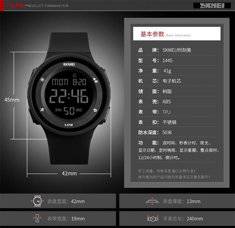 Relógio Digital Transfronteiriço Skmei Relógio Estudantil Masculino Luminoso À Prova d'Água Moda Relógio Esportivo