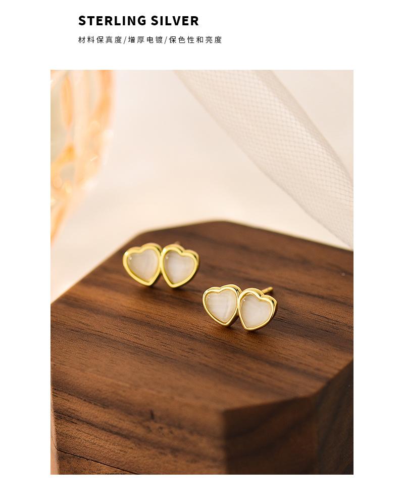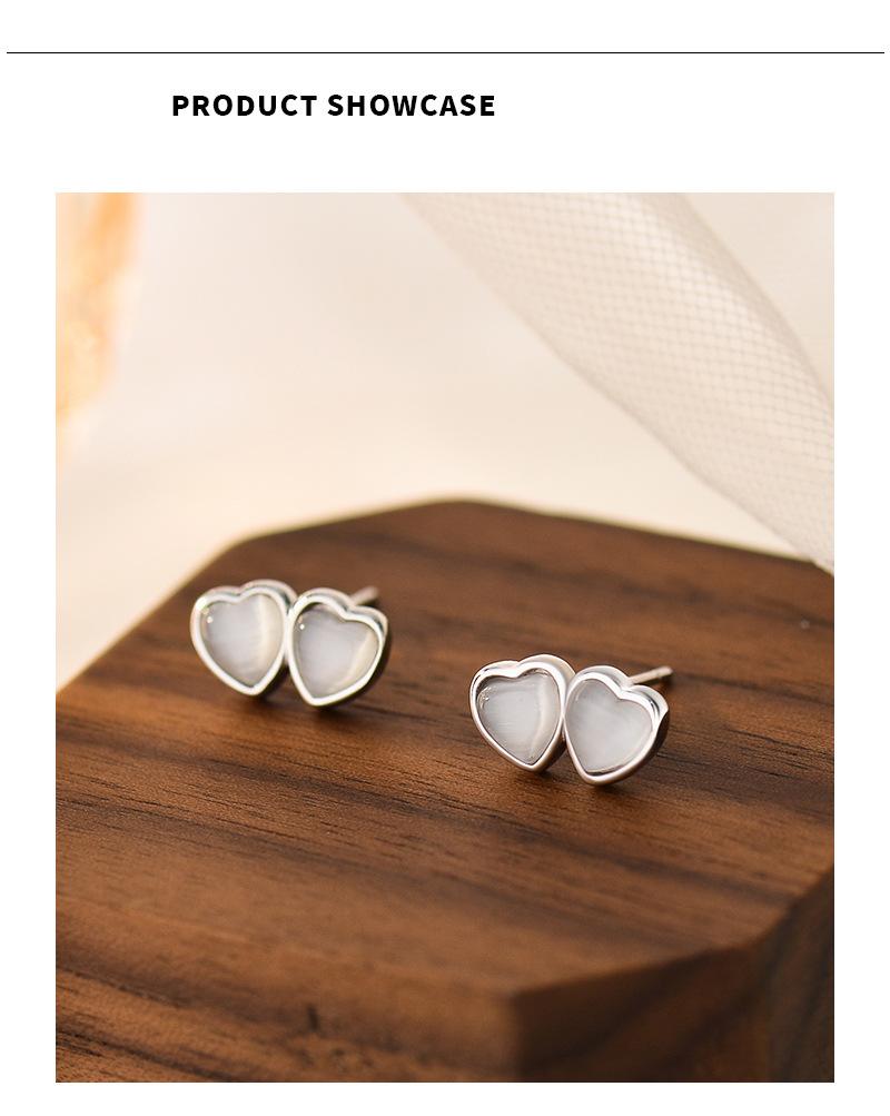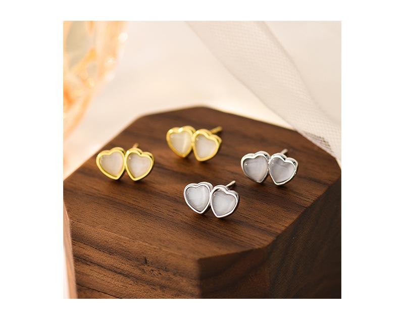 Yicheng S999 brincos de prata pura lindos brincos fofos simples e combinando brincos de coração para coração estampados para namorada