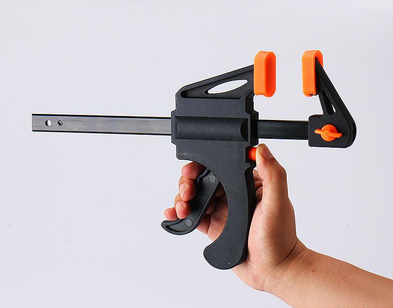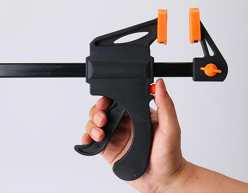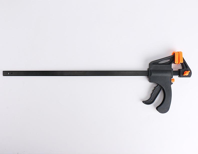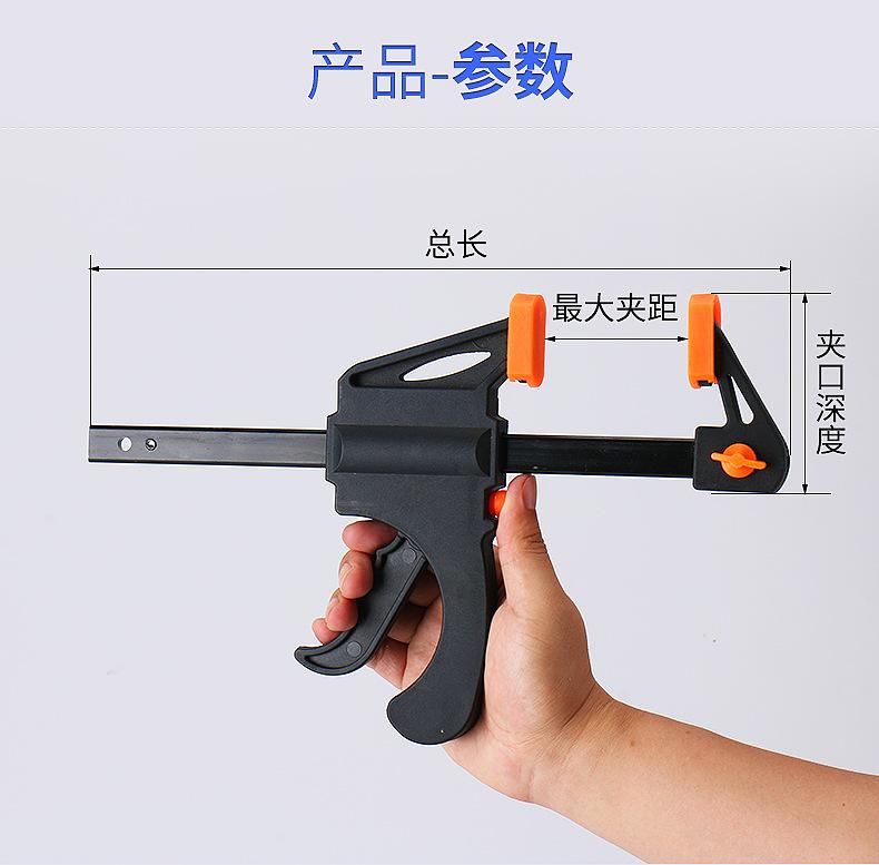Especificações de 10 polegadas: O comprimento total da braçadeira F é de cerca de 426 mm e a profundidade da boca da braçadeira60mm, a distância máxima de fixação de abertura é de cerca de 250 mm e o peso é de cerca de 540g. Tamanho da embalagem: 430*120mm