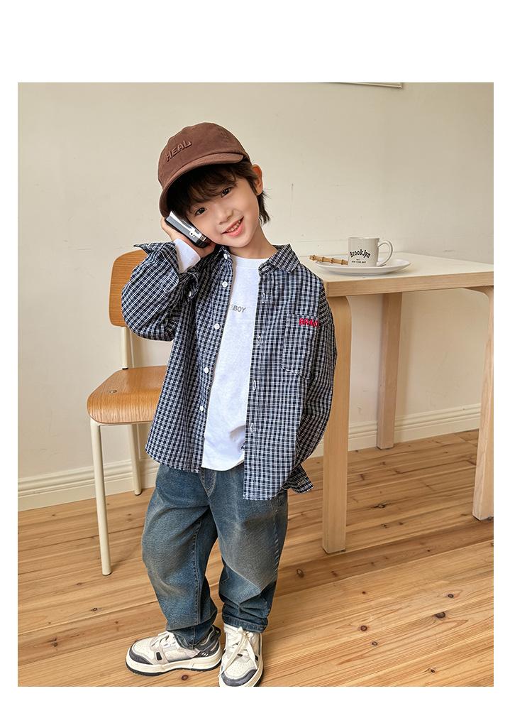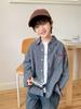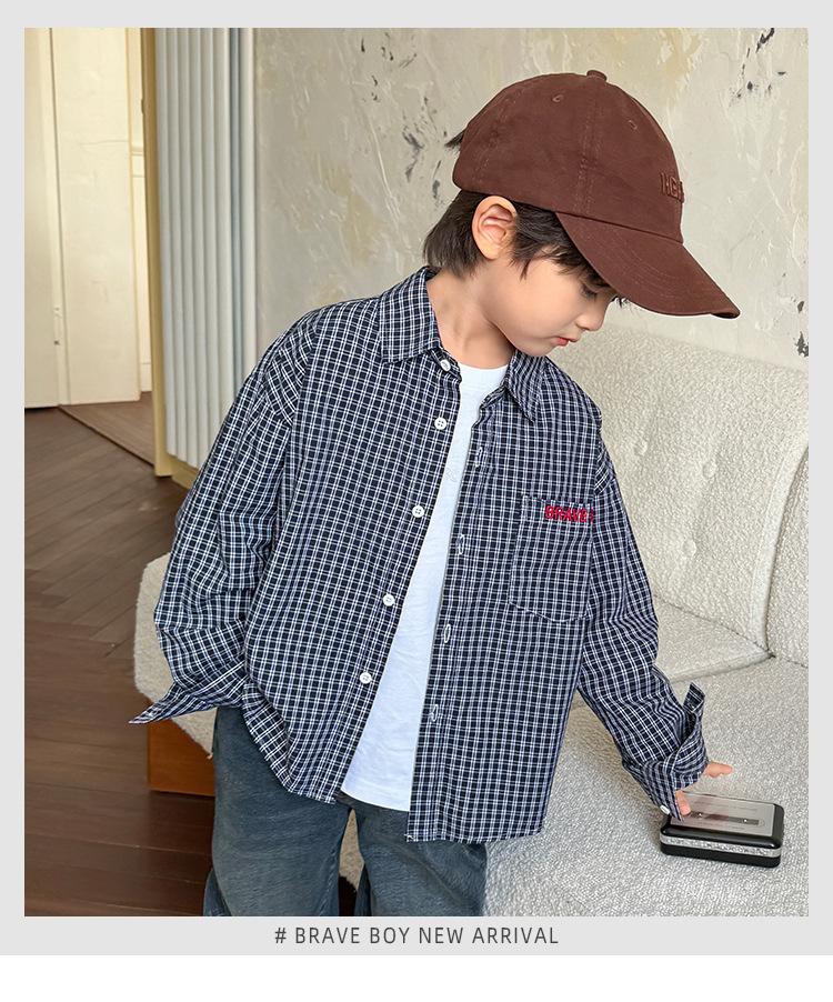 Camisa xadrez de lapela para meninos, camisa infantil coreana para crianças, outono de 2025, nova maré de outono da Haima