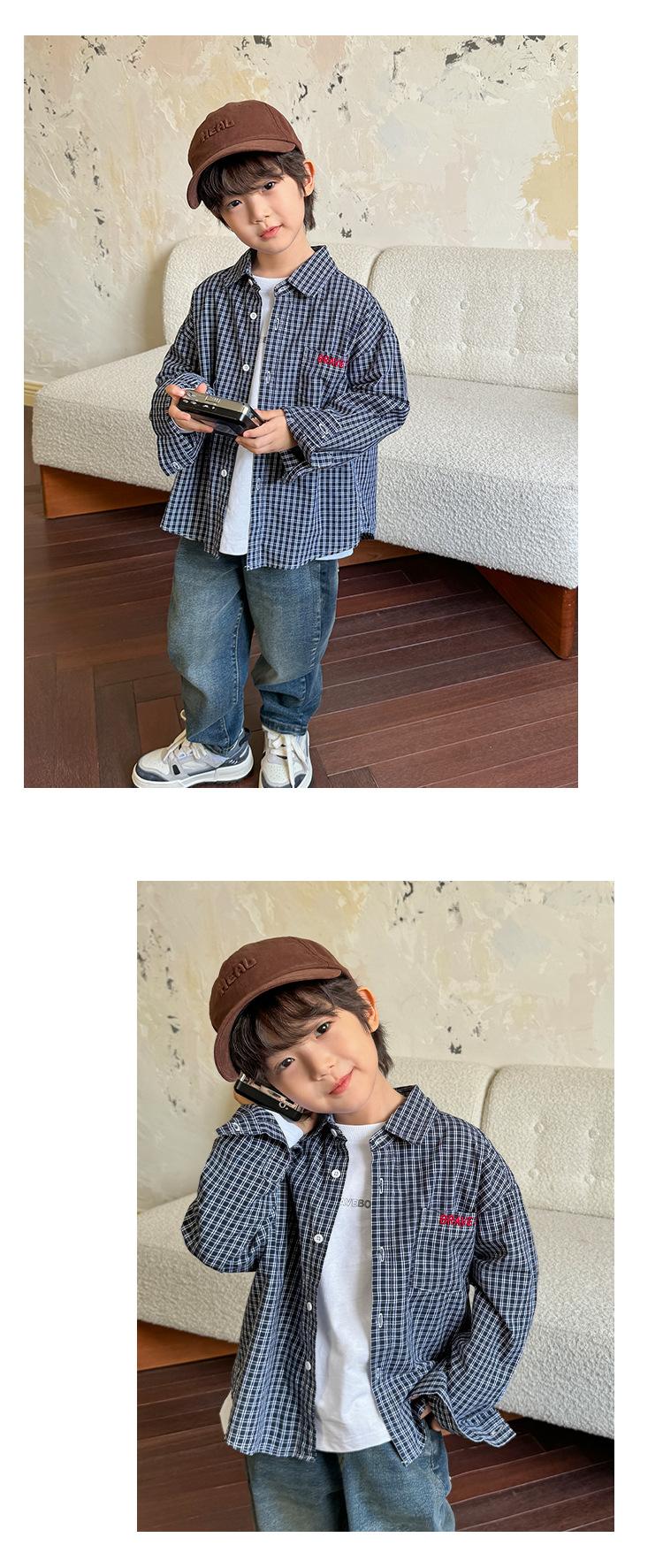 Compre Camisa xadrez de lapela para meninos, camisa infantil coreana para crianças, outono de 2025, nova maré de outono da Haima no atacado no Joom.pro